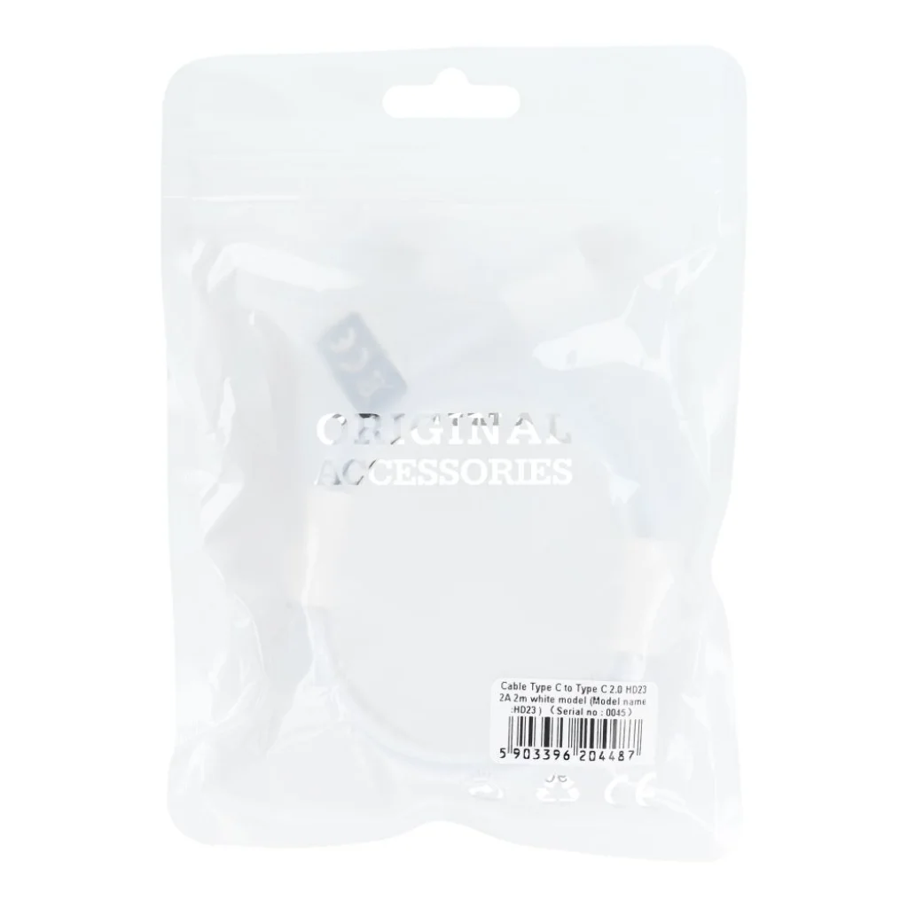 A HD23 kábel USB-C – USB-C 2.0 csatlakozókkal. Támogatja a töltést és az adatátvitelt. A sokoldalú kábel lehetővé teszi az eszköz töltését és az adatok biztonságos átvitelét. A 2 m hosszú kábel kompatibilis az USB-C csatlakozóval rendelkező eszközökkel, és a TPE kivitel biztosítja a sérülésekkel szembeni ellenállást, így a kiegészítő hosszú ideig használható. Specifikáció: Hossz: 2 m, Áramerősség: max. 2 A, Portok: USB-C – USB-C 2.0, Adatátvitel: legfeljebb 480 Mb/s, Anyag: TPE