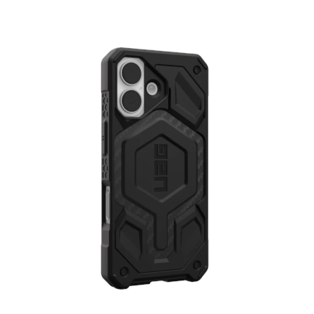 A LEGERŐSEBB UAG! Az UAG Monarch Pro az iPhone védelmének csúcsa. A tok akár 7,6 méteres ejtésektől is megvédi a készüléket – 5-ször több, mint a MIL-STD 810G 516.6 katonai szabvány. Többrétegű szerkezete és páncélos kialakítása páratlan védelmet nyújt bármilyen körülmények között. SZÉNROST ERŐSSÉGE A szénrost olyan anyag, amelyet a repülésben, a Forma-1-ben és az előrehaladott ipari technológiákban használnak. Rendkívül könnyű, ugyanakkor hihetetlenül tartós. A Monarch Pro megerősíti a tok szerkezetét, így pajzsot alkotva az iPhone-t ellenállóvá teszi az extrém G-erőkkel és a mindennapi ejtésekkel szemben. ÖTSZINTES KATONAI SZABVÁNY: A Monarch Pro ötszörösen meghaladja a MIL-STD 810G 516.6 szabványt. A formázott sarkoknak, az ütéselnyelő magnak és a belső méhhéj mintának köszönhetően az ütés ereje az egész szerkezetben szétoszlik. Telefonja valóban elit védelmet kap a mobil kiegészítők világában. MAGSAFE KORLÁTOZÁS NÉLKÜL. A beépített mágneses modul teljes MagSafe kompatibilitást biztosít. Gyors töltés, stabil kiegészítő rögzítés és könnyű használat—minden tökéletesen működik, bárhol is használja iPhone-ját. KÉNYELEM ÉS FUNKCIONALITÁS. A tok formázott szélei biztos fogást garantálnak, míg a nagyított gombok tiszta és kielégítő kattintást biztosítanak. A kiemelt peremek védik a képernyőt és a kamerát, és az egész szerkezet meglepően könnyű marad extrém tartóssága ellenére. PRÉMIUM TECHNOLÓGIA. A Monarch Pro kombinálja a szénrostot, a kézzel készített kidolgozást és az UAG páncélos megoldásait. Ez a tok előnyt jelent Önnek akár a város szívében, akár a legnehezebb terepen.