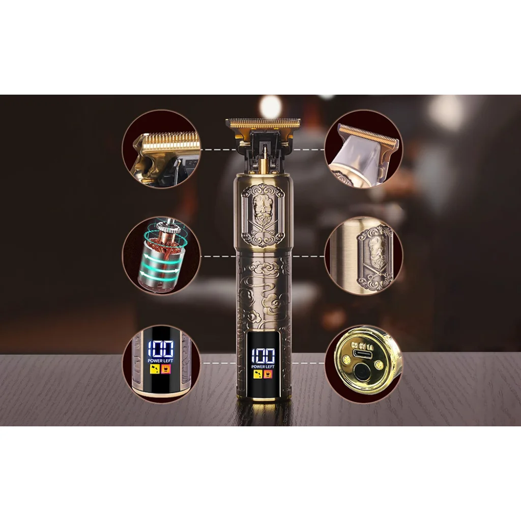 A 7500 RPM-es motorral felszerelt trimmer könnyedén bánik még a legsűrűbb hajjal is. A luxus fém ház növeli eleganciáját, és az LCD kijelző mutatja a töltöttségi szintet, hogy mindig tudd, mikor áll készen az eszköz a használatra.