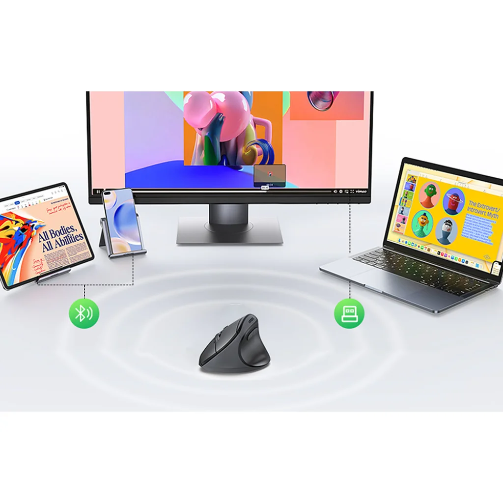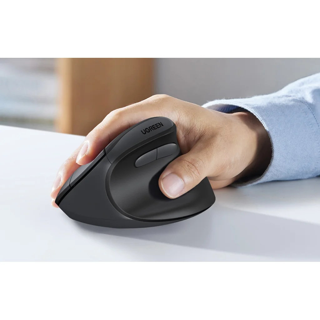 Az UGREEN egeret az ergonómia szem előtt tartásával tervezték - függőleges, természetes kialakítása csökkenti a csukló és a kéz feszültségét, így hosszú ideig dolgozhat fáradtságérzet nélkül. A kontúros forma tökéletesen illeszkedik a közepes és nagyméretű (17-19 cm vagy annál nagyobb) kezekhez, stabil fogást és teljes mozgásvezérlést biztosít.