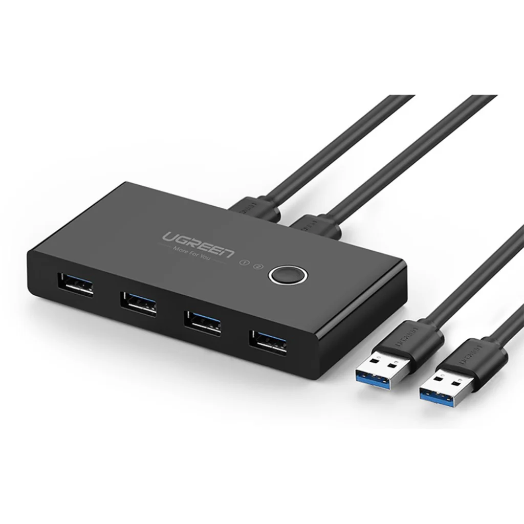 A UGREEN 30768B Kapcsolódoboz egy funkcionális adapter, amely akár négy USB 3.0 bemenettel és két USB csatlakozóval rendelkezik, amelyek két különböző eszközhöz való csatlakoztatást tesznek lehetővé. Lehetővé teszi a négy USB-eszközhöz való hozzáférés megosztását két számítógép között.