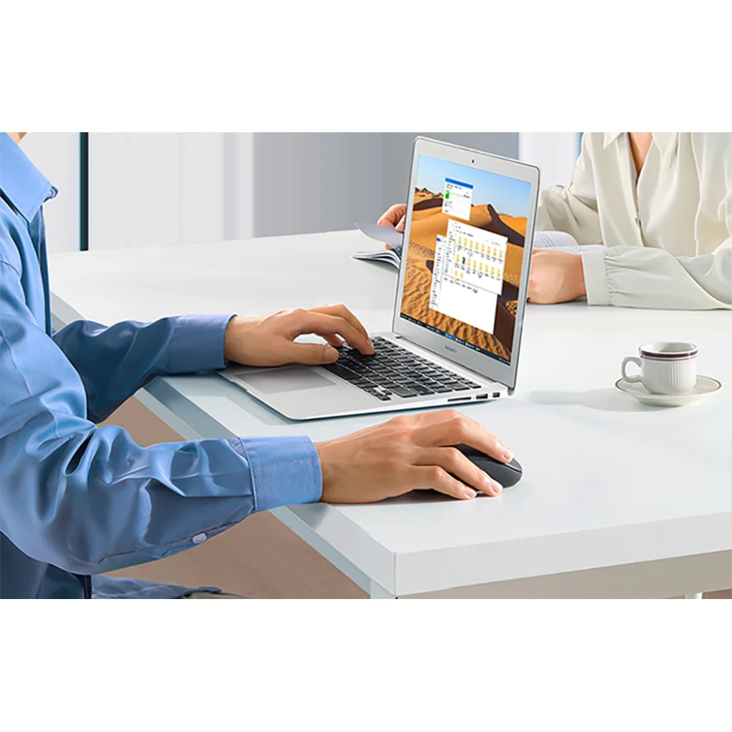 A 2.4G vezeték nélküli egér egy tökéletesen átgondolt kialakítású termék, amely kényelmet és komfortot biztosít. Ergonomikusan kontúrozott formája és a 99%-os zajcsökkentéssel ellátott, zajtalan kattintás lehetővé teszi, hogy napokig használhassa anélkül, hogy másokat zavarna.
