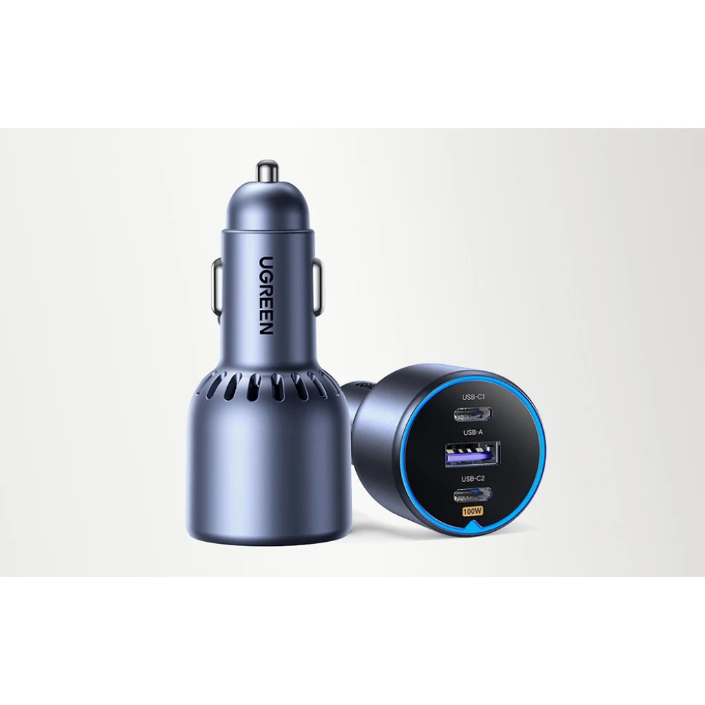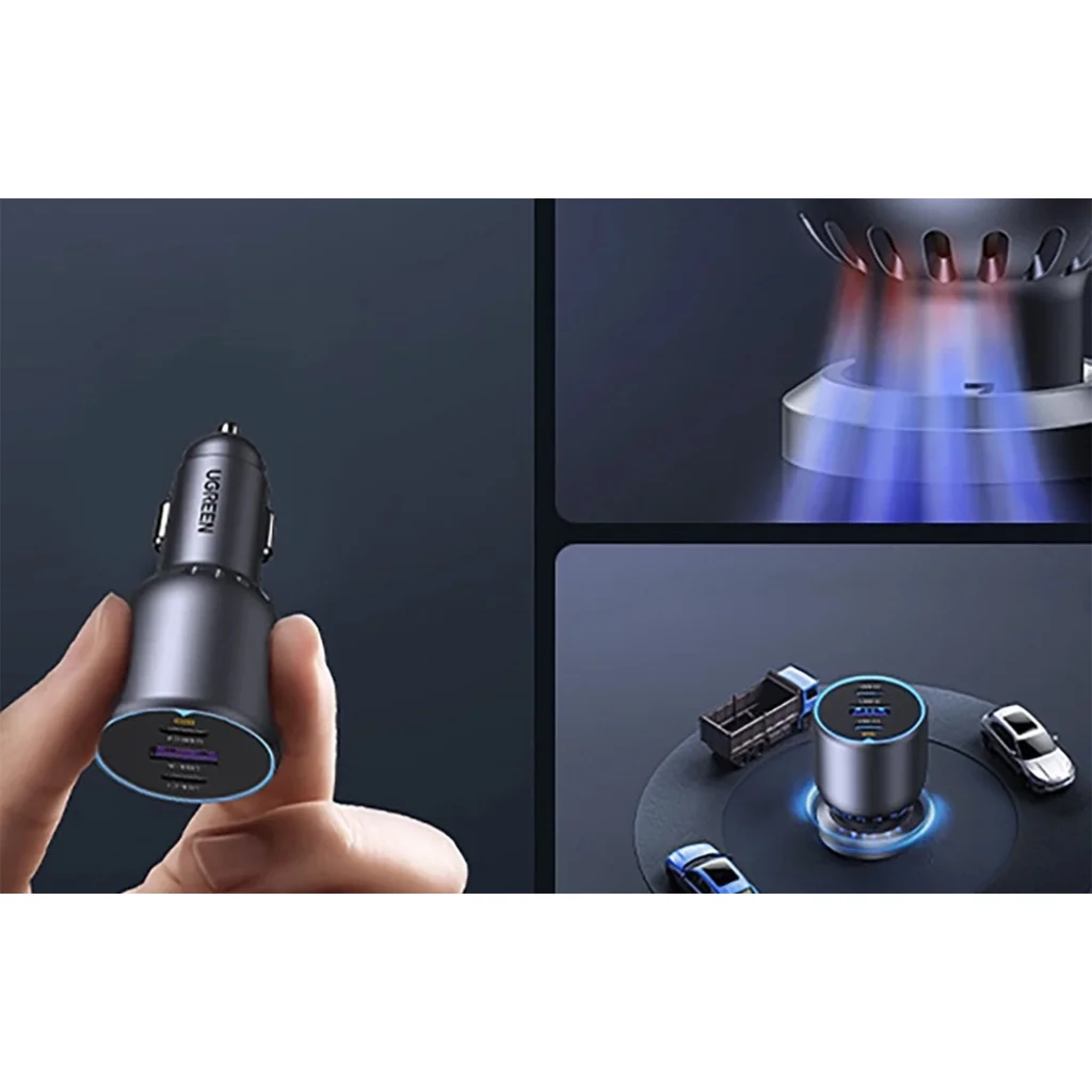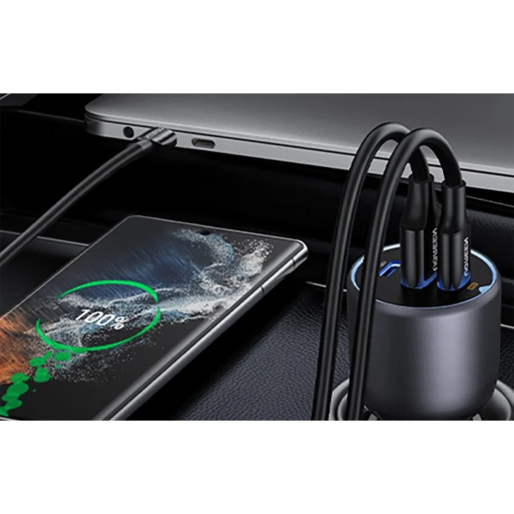 Termék leírás Ugreen - Autós Töltő EC705 (55511) - Telefonhoz, Laptophoz, Gyors Töltés, LED Világítás, 2x USB-C, USB, 130W, Type-C Kábellel - Szürke