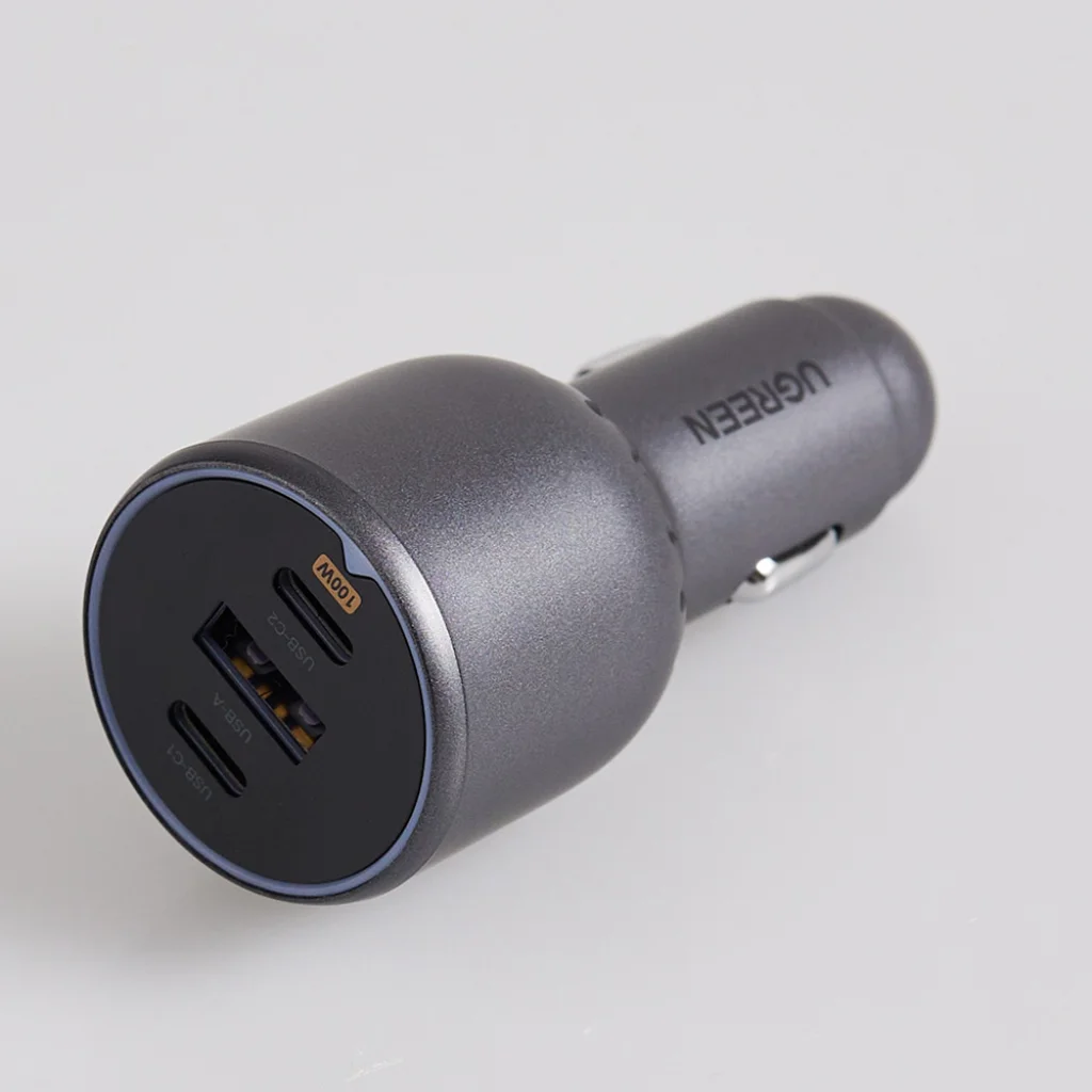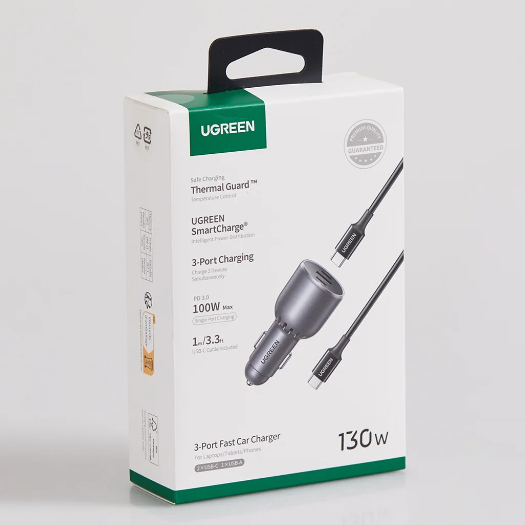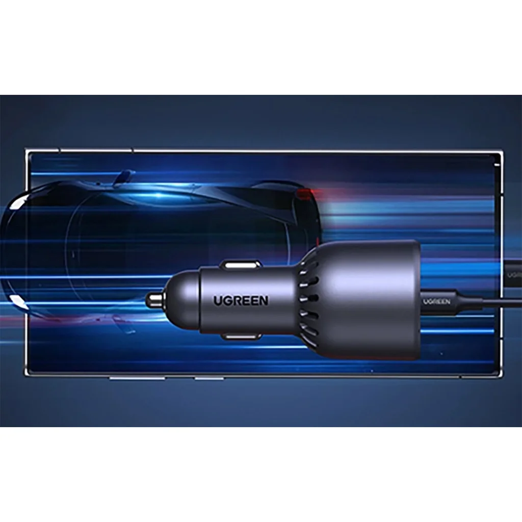 Termék leírás Ugreen - Autós Töltő EC705 (55511) - Telefonhoz, Laptophoz, Gyors Töltés, LED Világítás, 2x USB-C, USB, 130W, Type-C Kábellel - Szürke