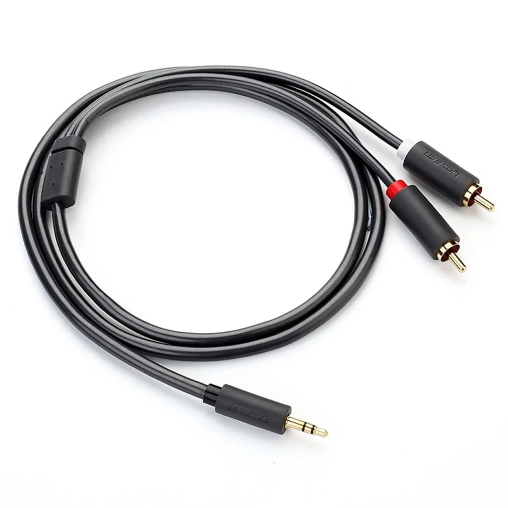 Ugreen AV102 10510 kábel 3.5 mm mini jack (férfi) / 2RCA (férfi) csatlakozókkal, 2 m hosszú - fekete. Csatlakozzon a zene világához és élvezze a legmagasabb minőségű hangot. Az Ugreen AV102 analóg audiokábel lehetővé teszi telefonja, okostelefonja vagy más eszköze összekapcsolását audio berendezéssel, például erősítővel vagy aktív hangszórókkal. Az egyik oldalon 3.5 mm mini jack csatlakozóval, a másik oldalon pedig 2RCA csatlakozóval rendelkezik. A dugói aranyozottak és a magja teljes hosszában árnyékolt. Ez biztosítja a kiváló hangminőséget, amit minden zenekedvelő értékelni fog.
