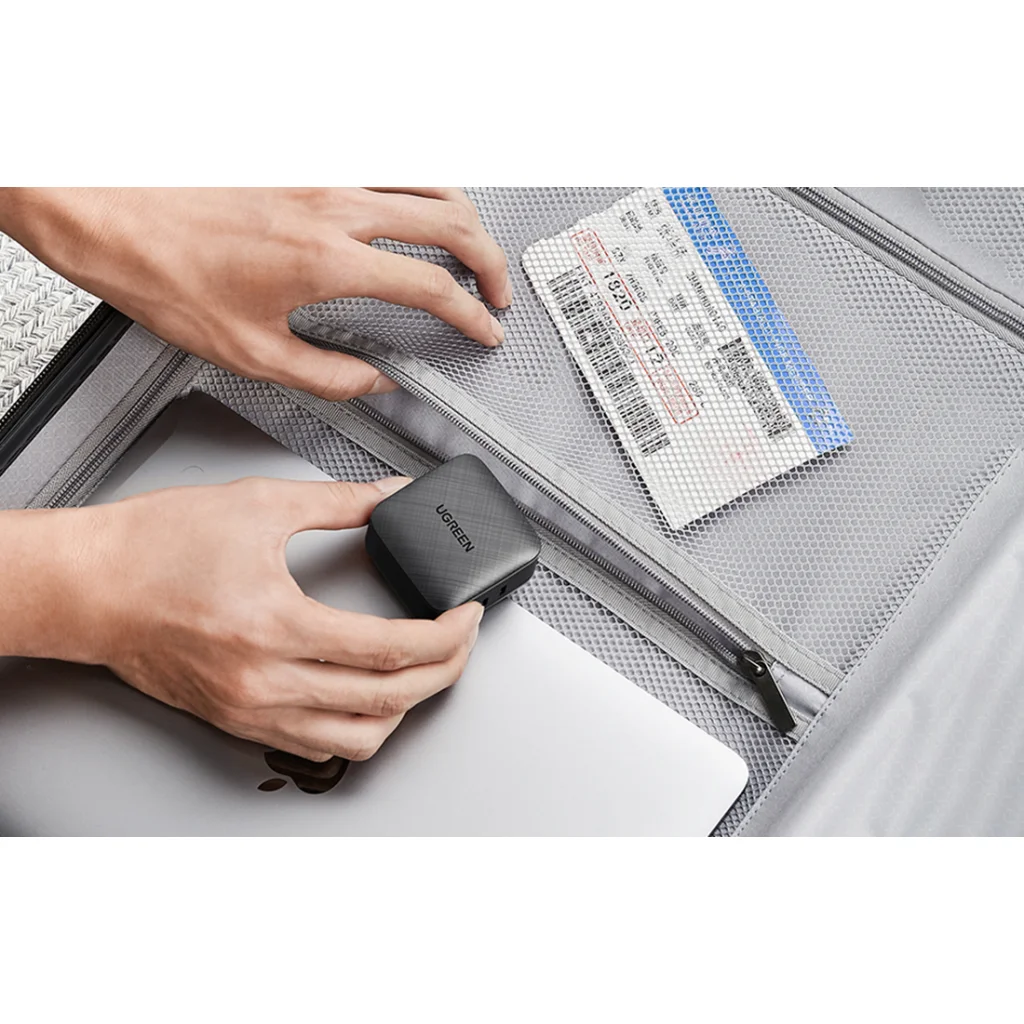 A mindössze 60x60x32 mm-es méretének és 160g-os súlyának köszönhetően az Ugreen CD216 az ideális útitárs. Könnyedén elfér bármilyen táskában, bőröndben vagy akár zsebben is, így nem kell többé aggódnod a töltési lehetőségek miatt utazásaid során. A letisztult, fekete színű, textúrált felületű design eleganciát kölcsönöz, ami bármilyen környezetben megállja a helyét, legyen szó üzleti útról vagy egy hétvégi kiruccanásról. Egyetlen adapterrel kiválthatod több, különféle töltődet, ezzel helyet és súlyt spórolva.