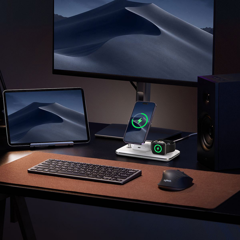 - 3 az 1-ben: vezeték nélküli töltés iPhone, Apple Watch és AirPods számára