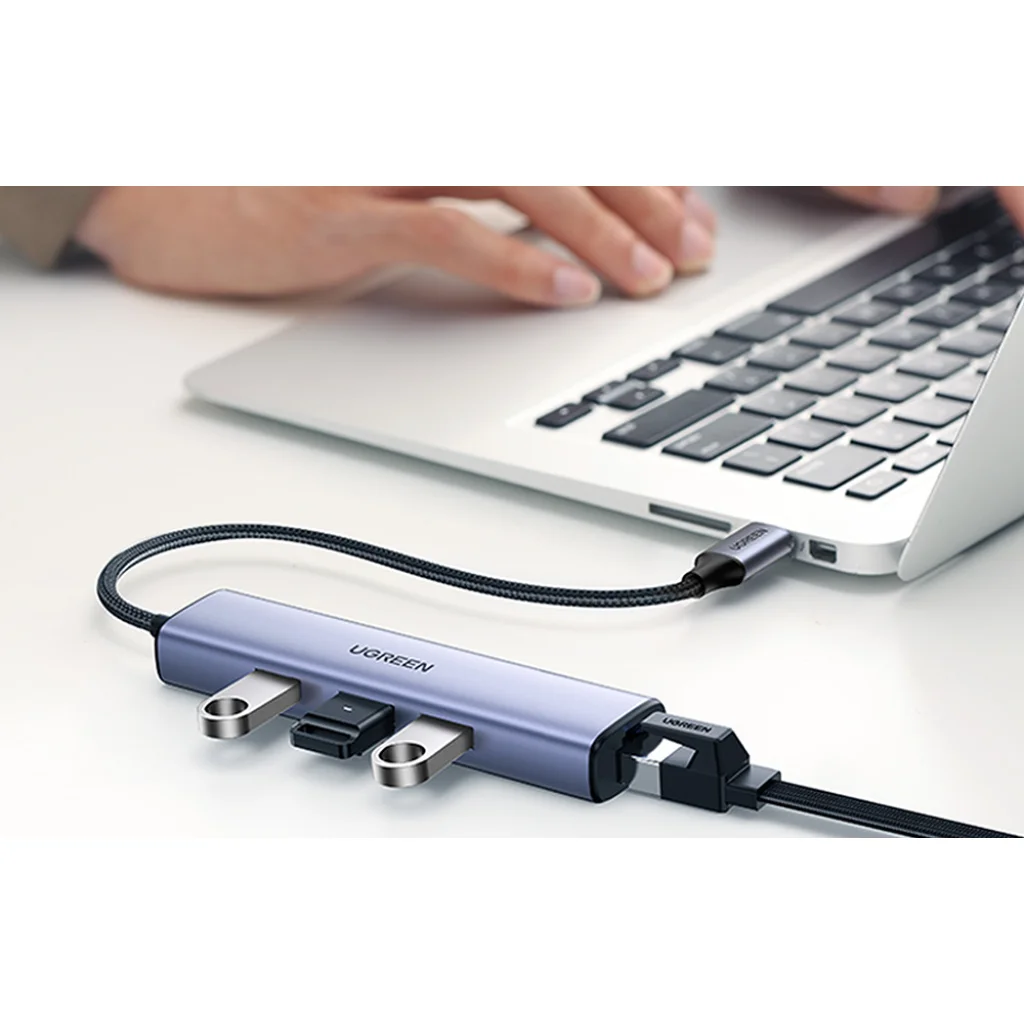 Növelje laptopja képességeit. A Ugreen adapter 3 USB porttal és egy RJ45 porttal rendelkezik, így 5 Gbps sebességgel továbbíthat fájlokat, vagy élvezheti a gyors internetkapcsolatot - 1000 Mbps.