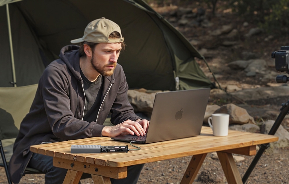 A masszív alumínium ház, a szilikon védőborítás és a beépített fonott USB-C kábel minden körülmények között biztosítja a tartósságot és a kényelmet.