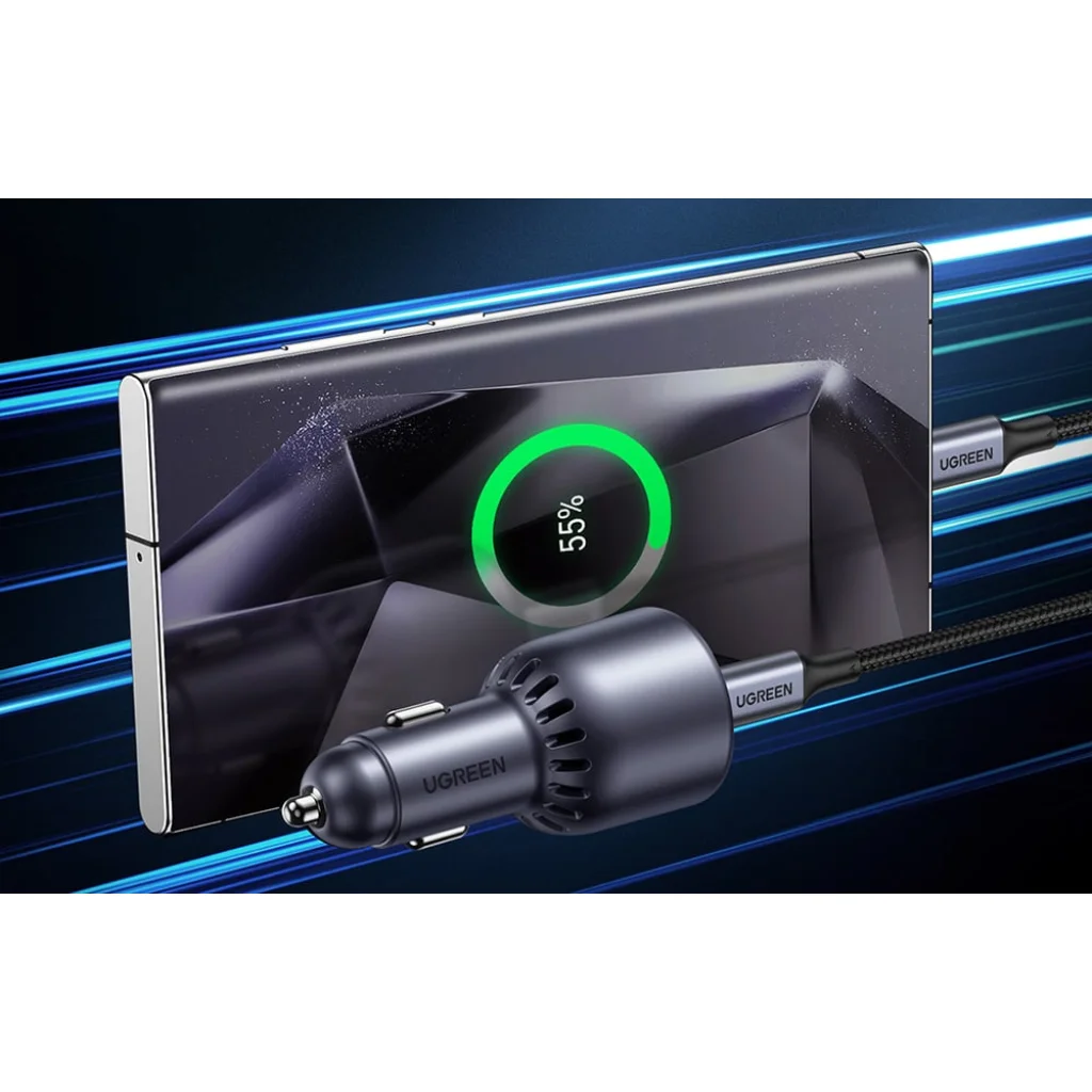 Ugreen EC701 autós töltő, USB + USB-C, 63W (fekete)