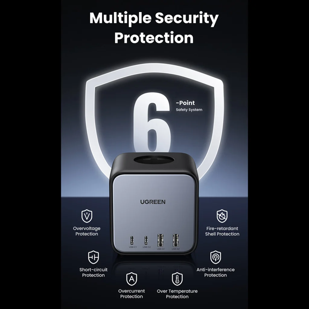 Az Ugreen DigiNest Cube a biztonságot helyezi előtérbe, átfogó, 6 pontos védelmi rendszerrel rendelkezik: