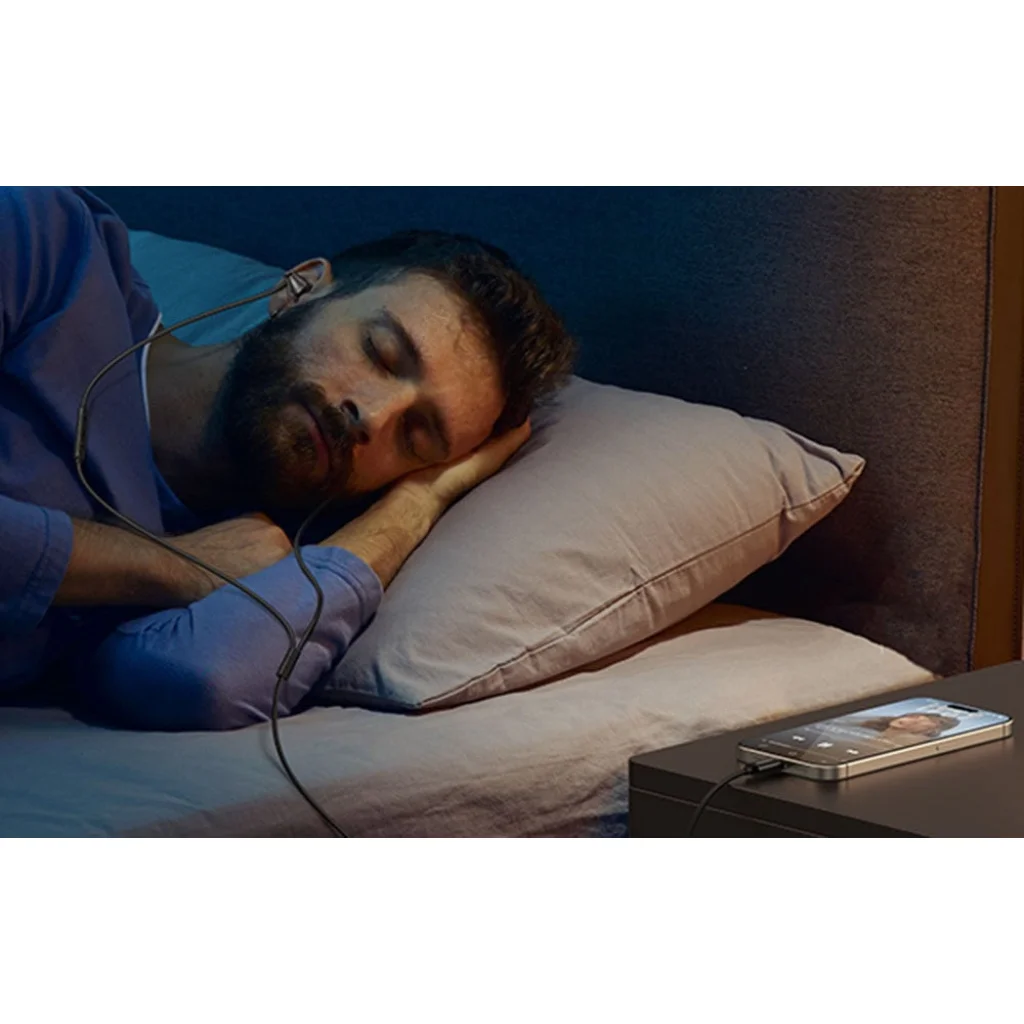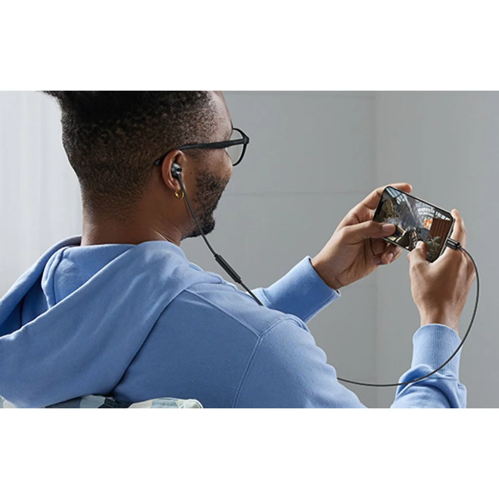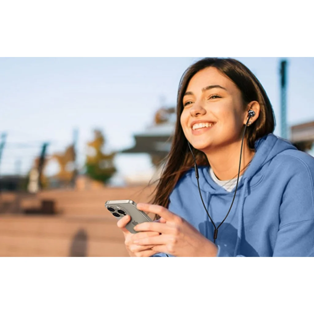 - Intuitív vezetékes vezérlés: A kábelbe épített panel lehetővé teszi a hangerő beállítását, zeneszámok váltását, lejátszás szüneteltetését vagy hívások fogadását, valamint a hangasszisztens aktiválását.