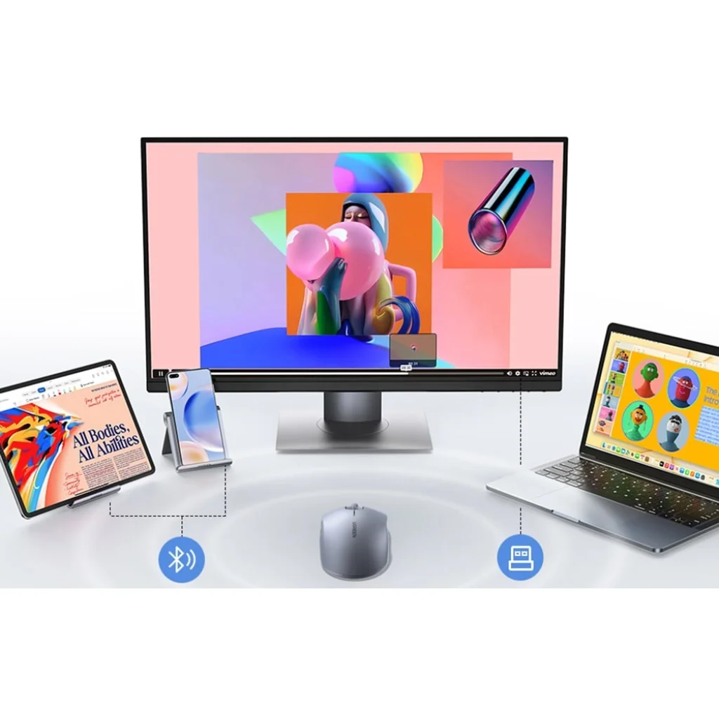 Az UGREEN M556 vezeték nélküli egér kettős 2.4G és Bluetooth 5.0 kapcsolattal rendelkezik, és lehetővé teszi, hogy egyszerre három eszközzel párosítson, és zökkenőmentesen váltson közöttük. Ergonomikus kialakítása, 1000-4000 között állítható DPI (Dots Per Inch, az egér érzékenységi felbontása), csendes 35 dB-es kattintása és zökkenőmentes működése a legkülönbözőbb felületeken ideális választássá teszi az otthoni vagy irodai használatra. A készülék működtetéséhez egyetlen AA elem elegendő, amely körülbelül 4-6 hónapos üzemidőt biztosít.