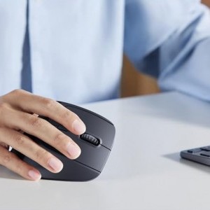 Ergonomikus kialakítás 57°-os szögben Az egeret úgy tervezték, hogy a kéz 57°-os szögben feküdjön. Ez a pozíció elősegíti a csukló természetes tartását és csökkenti az izomfeszültséget. Emellett a hüvelykujj számára kialakított hely lehetővé teszi, hogy az egész kéz kényelmesen pihenjen, ami jobb irányítást és kényelmet jelent a hosszú munka során.