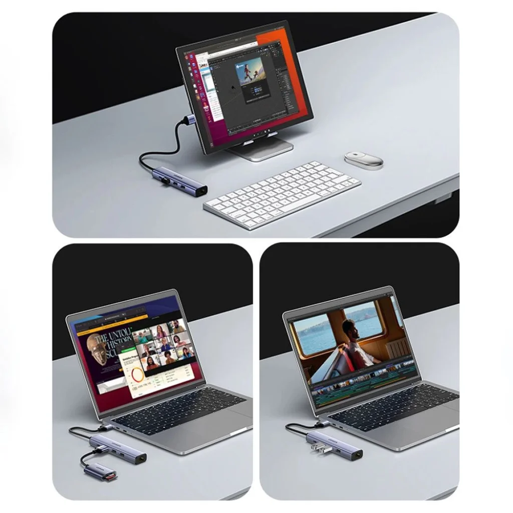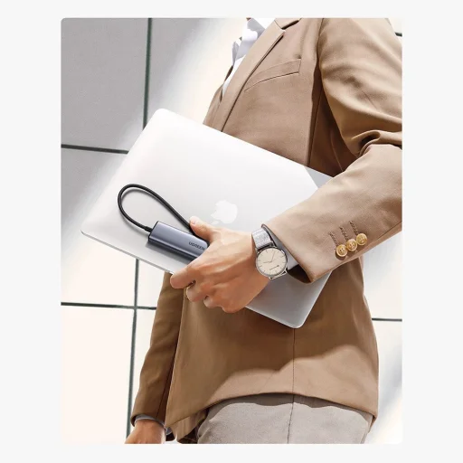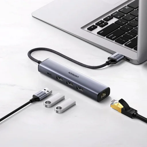 Ugreen multifunkcionális adapter HUB USB 3.0 - 3 x USB / Ethernet RJ-45 / USB Type C PD szürke (CM475) A folyamatos elektronikai eszközök miniaturizálása az oka annak, hogy sok modern számítógép, különösen a laptopok és az All-in-One munkaállomások, csak 1 vagy 2 USB porttal rendelkeznek. A kis méret természetesen vitathatatlan előnye a jelenlegi számítógépeknek, azonban néha kisebb kényelmetlenségeket is okozhat. Ezek a problémák akkor kezdődnek, amikor szükségessé válik például egy további monitor, nyomtató vagy hálózati kábel csatlakoztatása. Mit tehetsz ilyen helyzetben? Természetesen használd az Ugreen HUB-ot. Ennek segítségével egyetlen USB Type A portot négy további csatlakozóvá alakíthatsz a számítógépeden! Dönts most, és használd ki a 4 az 1-ben HUB minden funkcióját!