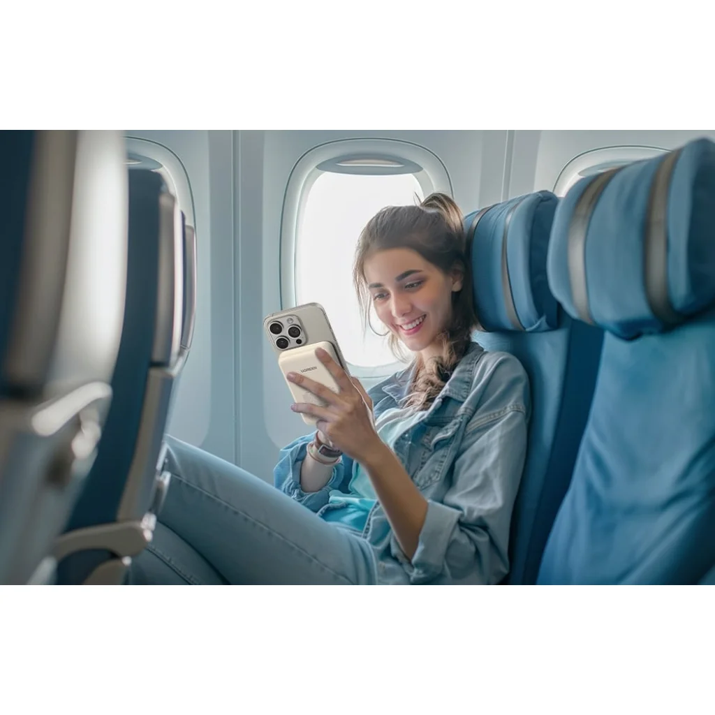 Ez a powerbank a tökéletes útitárs. Mindössze 230 gramm súlyú, és körülbelül egyharmadával kisebb, mint egy átlagos okostelefon, így könnyedén elfér a zsebében, táskájában vagy hátizsákjában. Megfelel a légitársaságok poggyászszabályzatának, így gondtalanul magával viheti repülőgépre is. A 10000mAh kapacitás elegendő energiát biztosít: az iPhone 15 készüléket majdnem kétszer (1.9-szer), az iPhone 14 Pro Max-ot 1.7-szer, a Samsung Galaxy S24 Ultra-t pedig 1.1-szer töltheti fel.