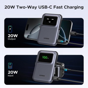 • 20W kétirányú USB-C gyors töltés: Az USB-C porton keresztül nemcsak készülékeidet töltheted szupergyorsan (20W kimenet), hanem maga a powerbank is villámgyorsan feltölthető (20W bemenet), így sosem maradsz energia nélkül.