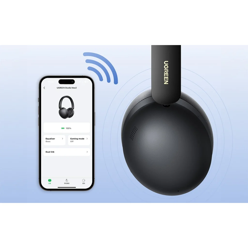 Amikor online csevegsz vagy telefonálsz, a tiszta és éles hangzás a legfontosabb. Az Ugreen Studio Max2 kettős mikrofonokkal rendelkezik, amelyek mögött mesterséges intelligenciát használó algoritmusok állnak, amelyek hatékonyan kiszűrik a környezeti zajokat. Az akár -35 dB-es zajcsökkentésnek köszönhetően hangja természetesnek hangzik, és tisztán hallható még egy zsúfolt bevásárlóközpontban, tömegközlekedési eszközön vagy az irodában is.