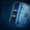 - Intelligens chip - Az eszköz intelligens vezérlési rendszerrel rendelkezik, amely az adott eszköz optimális feszültségét állítja be. Az eszközöd pontosan annyi áramot kap, amennyire szüksége van a legrövidebb idő alatt történő feltöltéshez, anélkül, hogy veszélyeztetné az akkumulátort.
