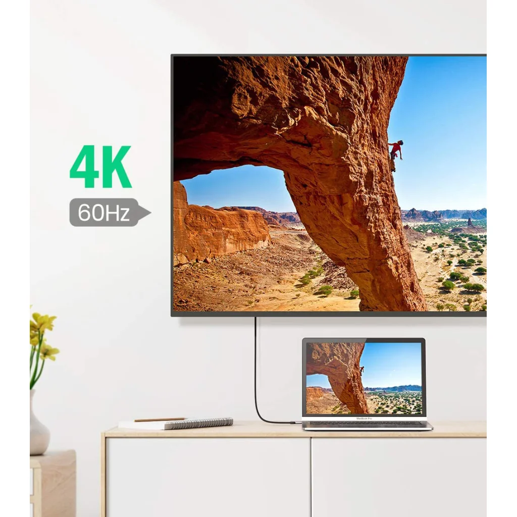 Támogatja az akár 4K UHD (3840x2160) felbontást és 60 Hz-es frissítési gyakoriságot, így könnyedén átviheti telefonja vagy laptopja tartalmát a nagy képernyőre, és élvezheti a kiváló minőségű képeket.