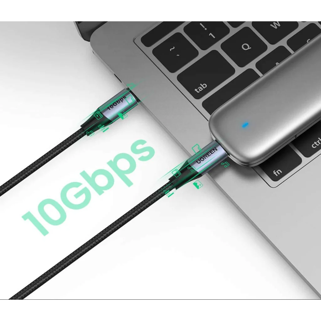 A kábel akár 10 Gbps-os gyors adatátviteli sebességgel rendelkezik, 20-szor gyorsabb, mint az USB 2.0 (csak 480 Mbps).