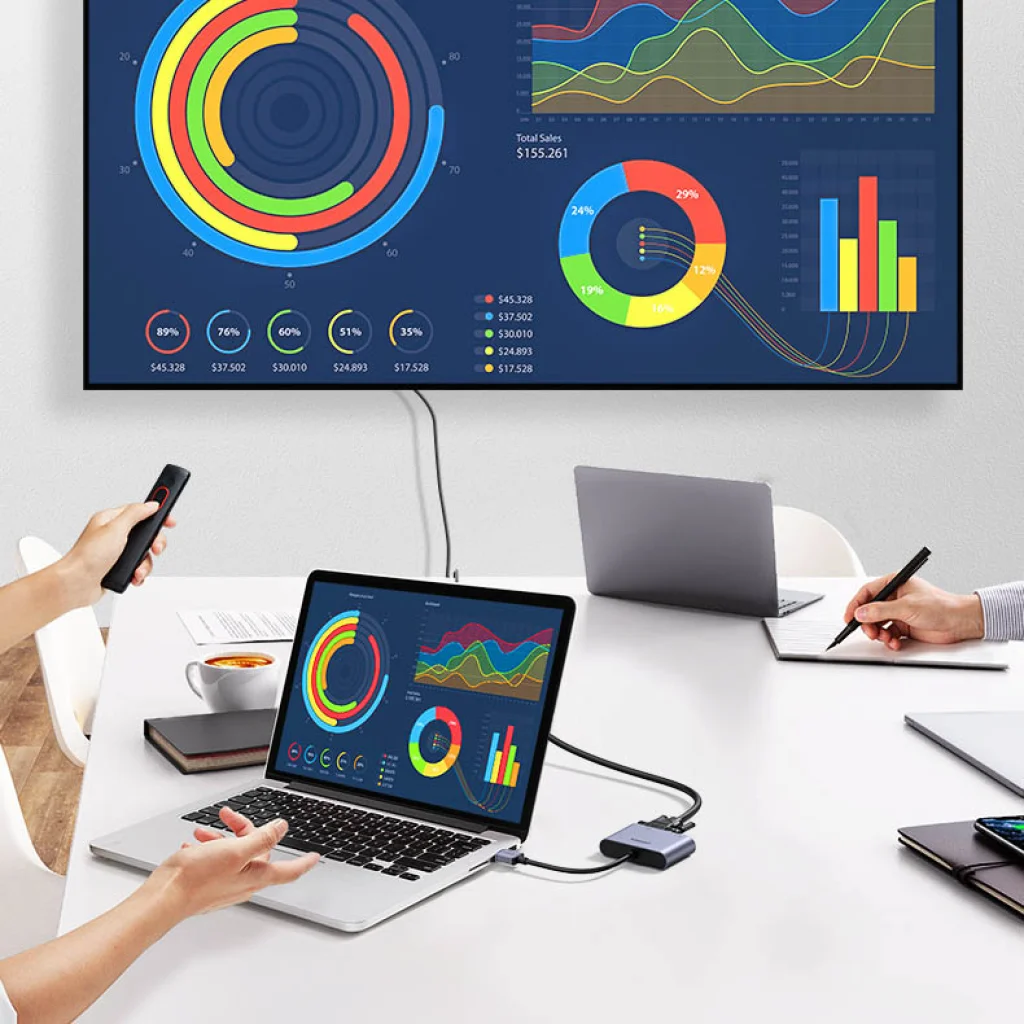 Mit szólna a Power Pointban készített prezentáció áttekintéséhez egy kicsit nagyobb képernyőn, hogy jobban bemutassa a feltételezéseket? Vagy esetleg meg szeretné nézni a nyaralási fotóit a tévéjén? Ezért jött létre az Ugreen USB-A - HDMI + VGA videó adapter. Ezzel a kis tartozékkal egyszerűen csatlakoztathat egy laptopot TV-hez vagy projektorhoz VGA- vagy HDMI-kábellel.