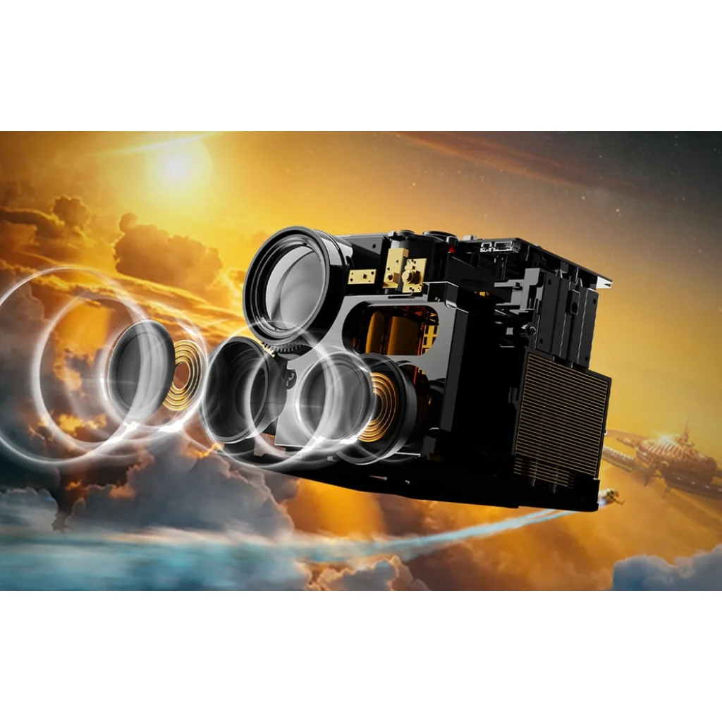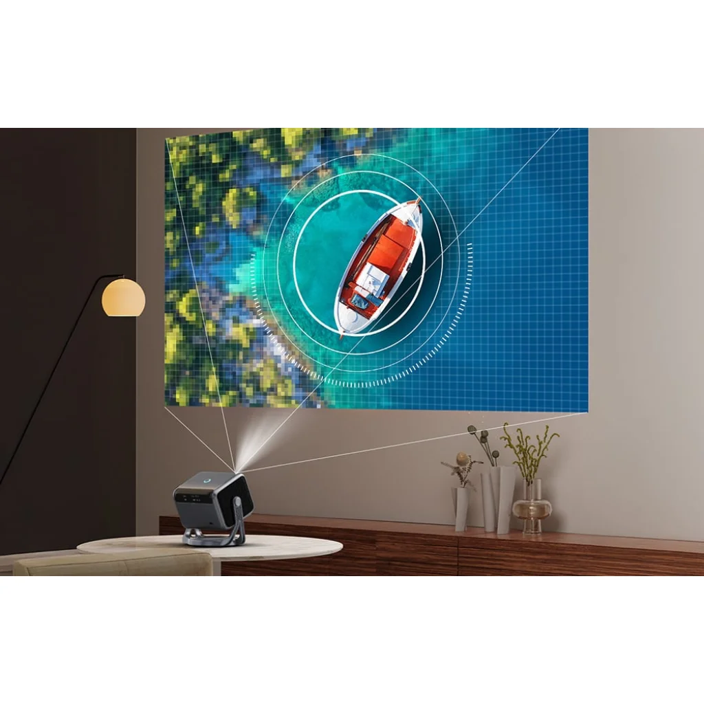 A projektor két teljes tartományú hangszóróval van felszerelve, mindegyik 5 W teljesítményű, amelyek tiszta és kiegyensúlyozott hangot biztosítanak. Ezenkívül a Bluetooth 5.3 segítségével zökkenőmentesen csatlakoztathat külső hangszórókat vagy audiorendszert. Ezzel nappaliját igazi mozivá varázsolhatja. A projektor 100%-os színvisszaadást és 95%-os NTSC lefedettséget biztosít, ami tiszta, telített színekkel és gazdag részletekkel jár. Az 1,25:1 képaránnyal még korlátozott térben is nagyobb képet kaphat, anélkül, hogy a kijelző minősége romlana.