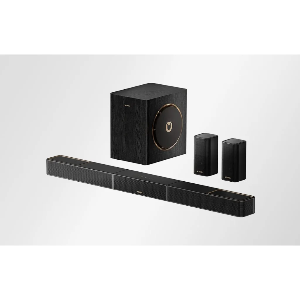 A továbbfejlesztett távirányító intuitív és gyors kezelést biztosít, a dedikált Ultimea alkalmazás pedig lehetővé teszi a hangbeállítások közvetlen vezérlését okostelefonjáról. A vezeték nélküli Bluetooth 5.4 kapcsolat kényelmes zenehallgatást kínál mobil eszközökről, így a rendszer sokoldalú otthoni szórakoztatóközponttá válik.