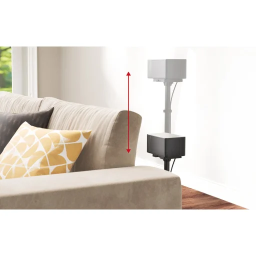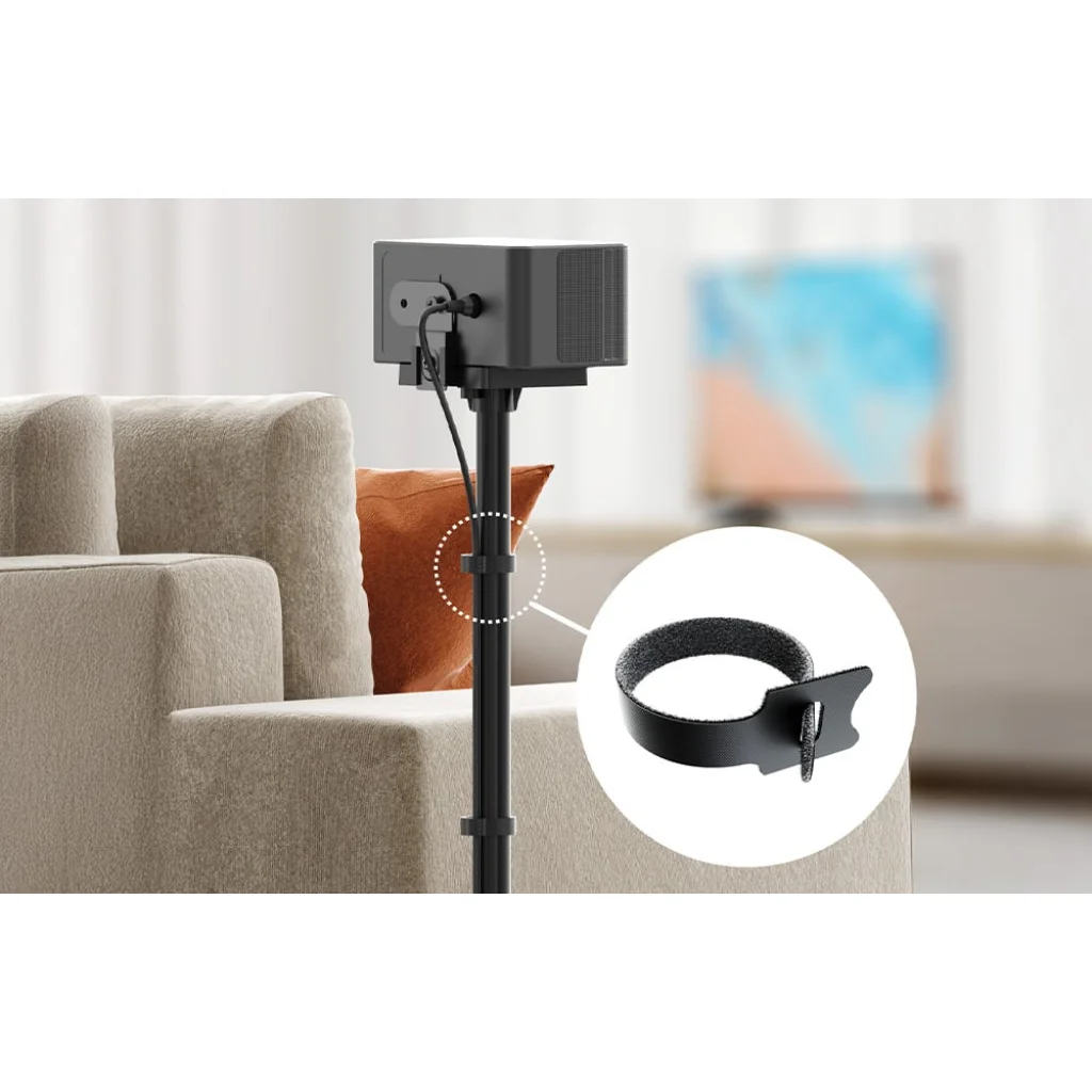 Rendezett, kusza kábelek nélkül A tépőzáras szalagok lehetővé teszik a kábelek rendezett elvezetését az állvány oszlopa mentén. Így a telepítés rendezettnek tűnik, és nem vonja el a figyelmet a belsőépítészetről vagy az audioberendezésekről.