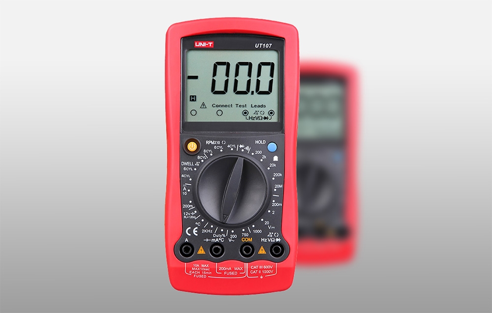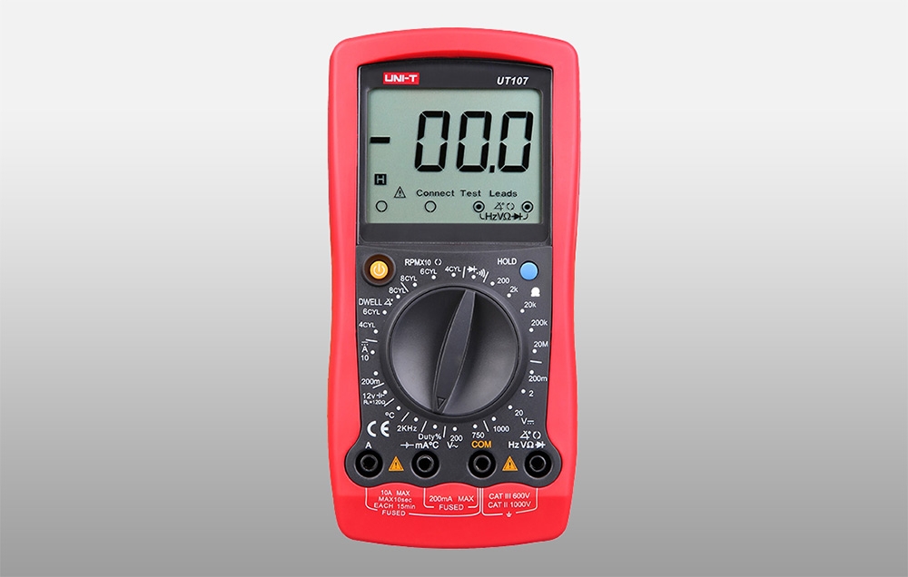 Az UT107 pontos méréseket biztosít egyenáramú (DC) feszültségről 200 mV-tól 1000 V-ig és váltakozó feszültségről (AC) 750 V-ig. Emellett a mérőműszer támogatja az egyenáramú áram mérését 10 A-ig, ami lehetővé teszi a különböző autóalkatrészek áramfelvételének ellenőrzését. Az ellenállásmérés 200 Ω-tól egészen 20 MΩ-ig lehetséges, ami jól használható érzékelők, vezetékek és csatlakozások diagnosztizálásához.