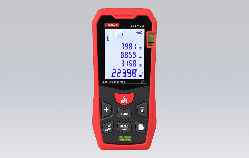 Multifunkcionalitás mindenkinek Az UNI-T LM120A nem csak távolságmérés - a készülék támogatja a maximális és minimális távolságmérési funkciókat, a folyamatos méréseket, valamint a gyors mező- és térfogatszámításokat is. Az eredmények tárolásának lehetőségével az adatok kézi jegyzetelés nélkül is könnyen összehasonlíthatók és elemezhetők. Az intuitív működés és a könnyen leolvasható kijelző lehetővé teszi a zökkenőmentes munkát a belsőépítészet, az építőipar, a mérnöki ellenőrzés, a gyárfelügyelet és az ingatlanfejlesztés területén.