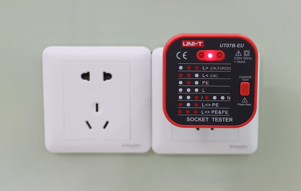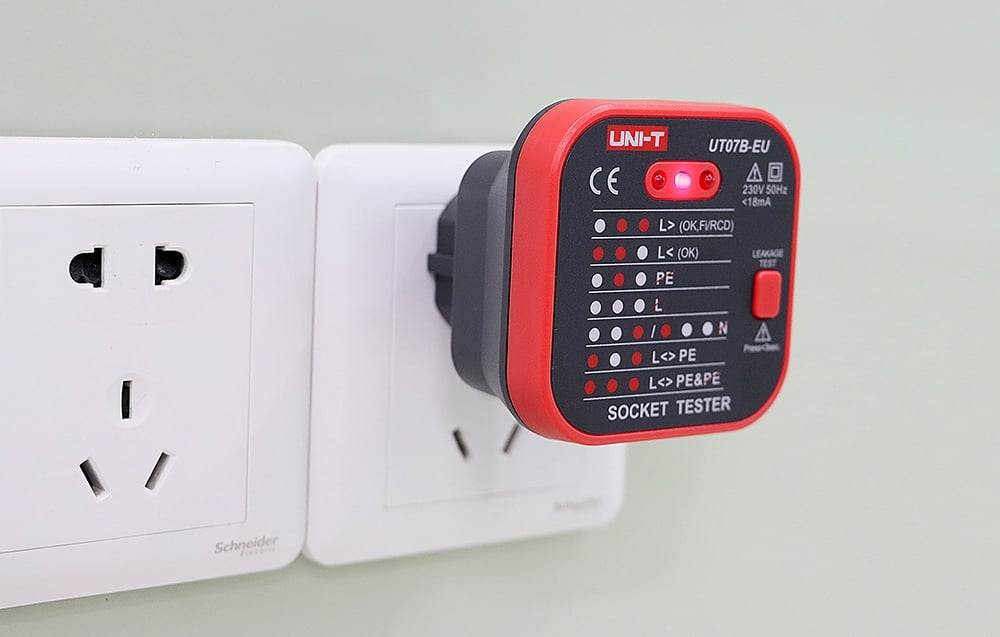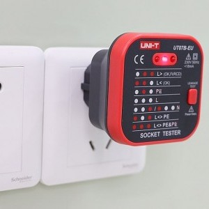 Az UNI-T UT07B-EU hálózati aljzatvizsgáló az UT07A-EU modell kibővített változata, amely a standard kábeldiagnosztika mellett beépített hibásáramú készüléket (RCD) is kínál. Ennek köszönhetően a készülék nem csak a berendezés kábelezésének szabálytalanságait érzékeli, hanem lehetővé teszi az áramütés elleni védelem hatékonyságának ellenőrzését is.