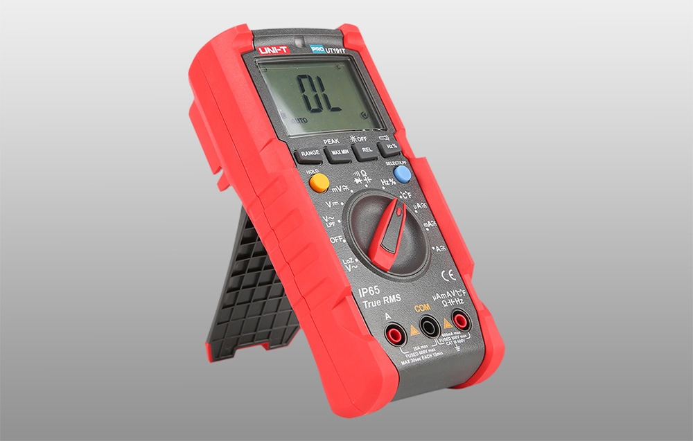 Az UNI-T UT191T egy professzionális digitális multiméter, amelyet zord ipari környezetben való használatra terveztek. A True RMS funkcióval felszerelt mérőműszer pontos feszültség-, áram-, ellenállás-, kapacitás-, frekvencia- és hőmérséklet-méréseket biztosít. Az UT191T 6000-es felbontást és automatikus vagy kézi tartományválasztást kínál. A mérő háza megfelel az IP65 szabványnak, és akár 2 méteres magasságból történő leejtést is kibír, így ideális eszköz a zord és változó körülmények között történő használatra.