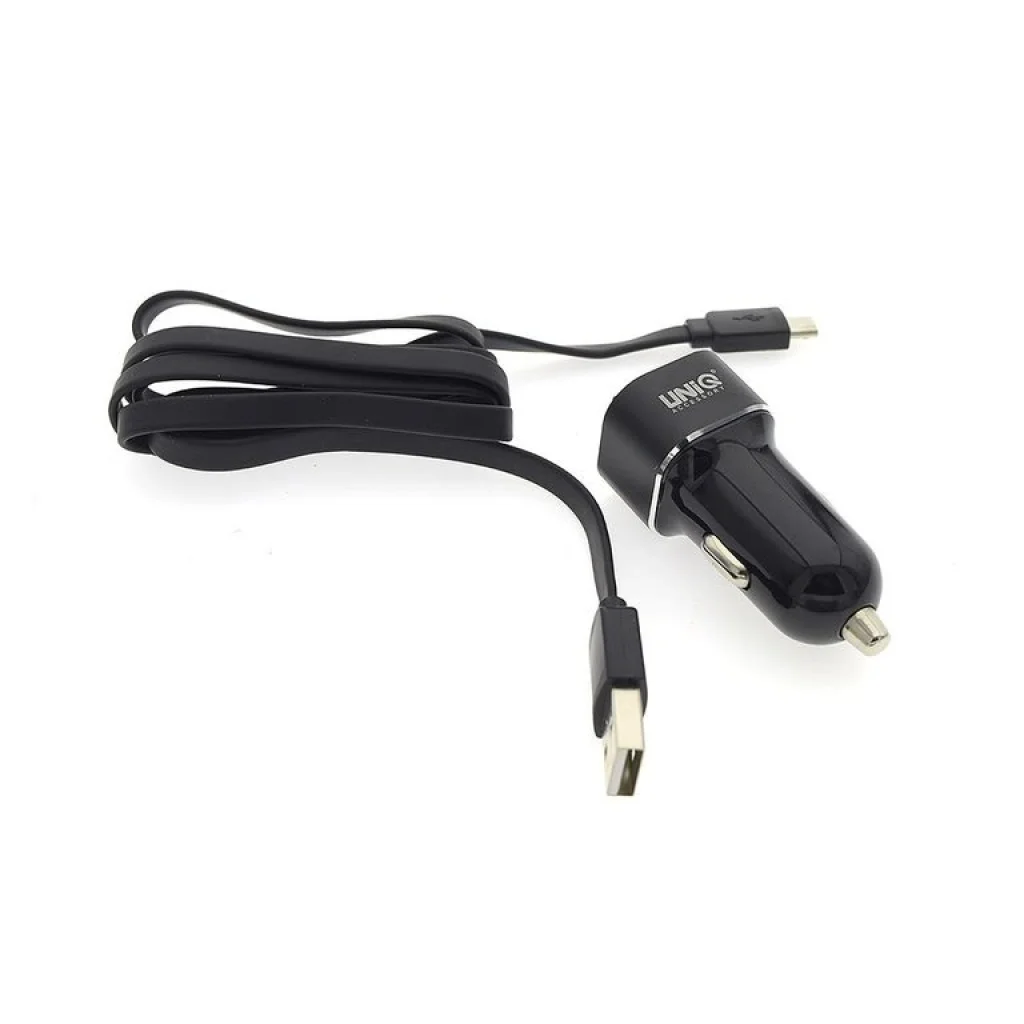 UNiQ autós szivargyújtós töltő MicroUSB kábellel fekete QC 2.4A QC016