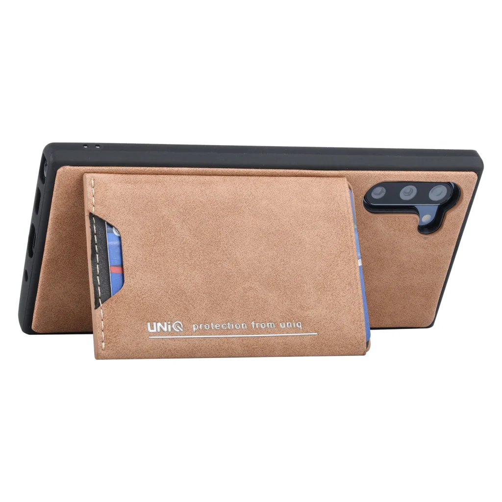 Környezetbarát bőr és TPU anyaghasználattal készült tok, hátlapján kártyatartóval mely kitámasztóként is használható.