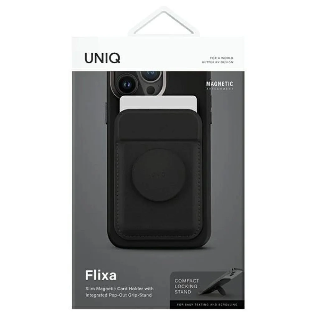 Uniq Flixa Mágneses Kártyatartó és Állvány Fekete/Jet Fekete MagSafe