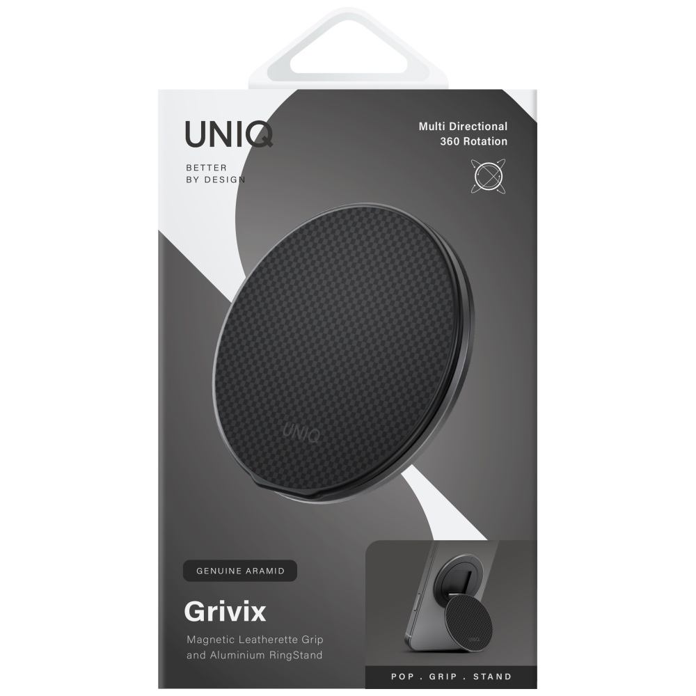 Műszaki adatok: Márka: Uniq, Kollekció: Uniq Grivix Premium 360 Mount&Grip Stand Magnetic Holder, Anyag: Kevlár szál / Alumínium, Szín: Acél