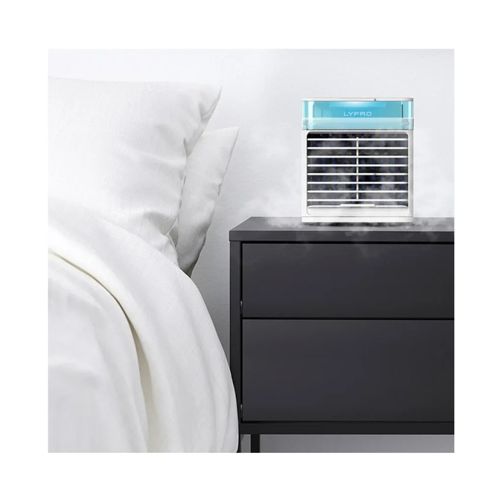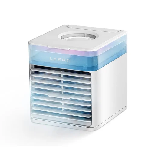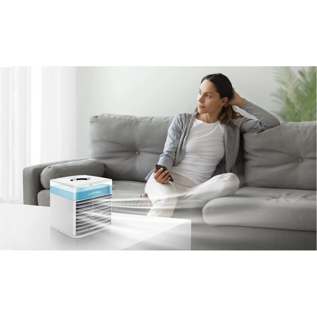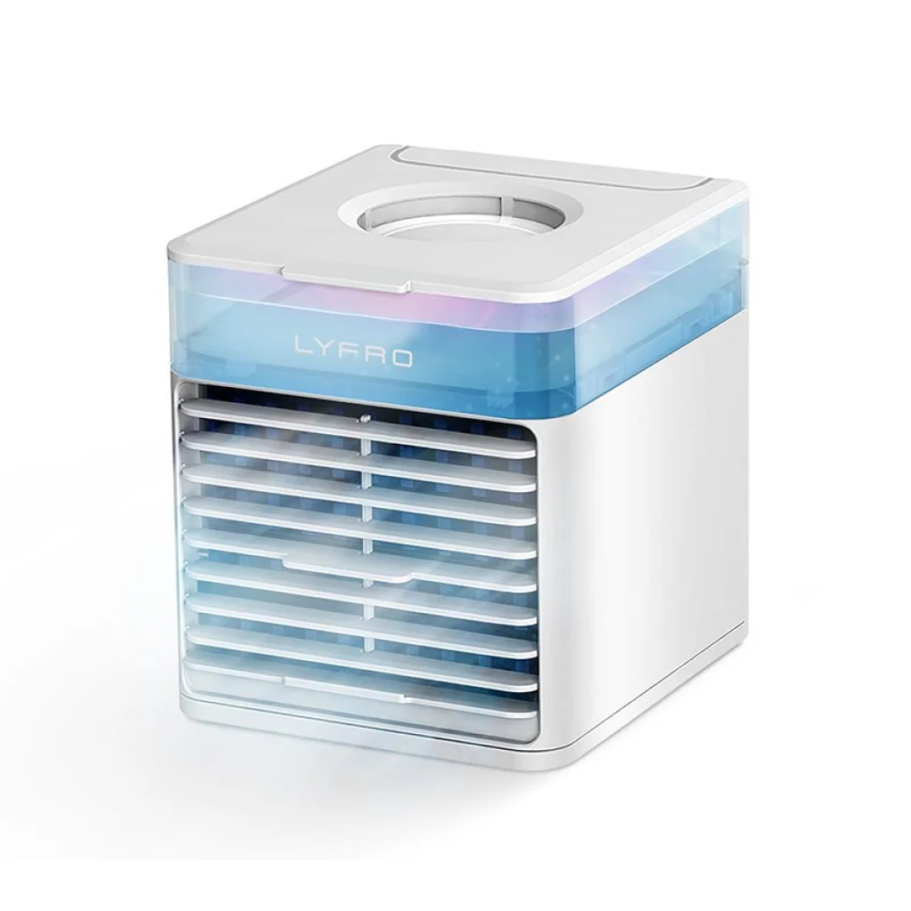 - Hűtési funkciója egyszerű: Töltsünk vizet a tároló edénybe, rakjunk hozzá jeget és néhány másodperc múlva élvezhetjük az akár 5 °C-kal hűvösebb környezetet és fertőtlenített levegőt