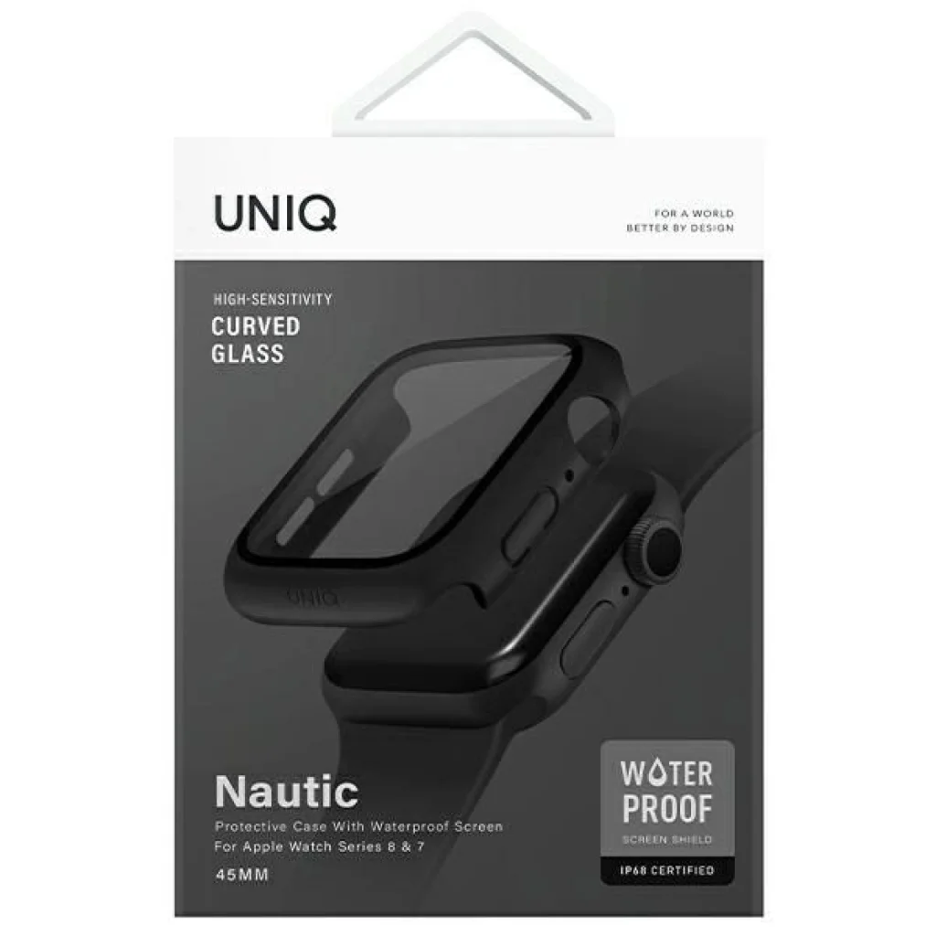 A Uniq Nautic tok egy vékony, védő tok IP68 vízálló képernyővédelemmel. A HydroDust Seal™ technológia megakadályozza a víz bejutását a kijelző alá, és nem befolyásolja az érintésérzékenységet. A tok szerkezete egy vékony és elegáns védő tokból áll, amely pontosan körülöleli az Apple Watch házát, valamint egy 9H keménységű edzett üvegből készült képernyővédőből, amely extra HD tisztaságot biztosít. Az egyszerűen felpattintható kialakításnak köszönhetően nem szükséges eltávolítani a szíjat a tok felhelyezésekor.