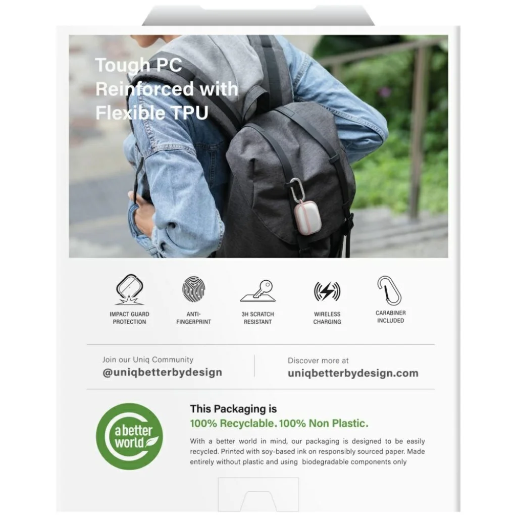 A Uniq Veren tok tervezésekor a mindennapi kényelem volt a fő szempont. Egy strapabíró és megbízható karabinerrel van felszerelve, amely lehetővé teszi, hogy AirPods-át biztonságosan rögzítse táskájához, hátizsákjához vagy övéhez, így mindig kéznél lehet, és minimalizálhatja az elvesztés kockázatát. A Veren nemcsak védelmet, hanem praktikus mindennapi megoldásokat is kínál!