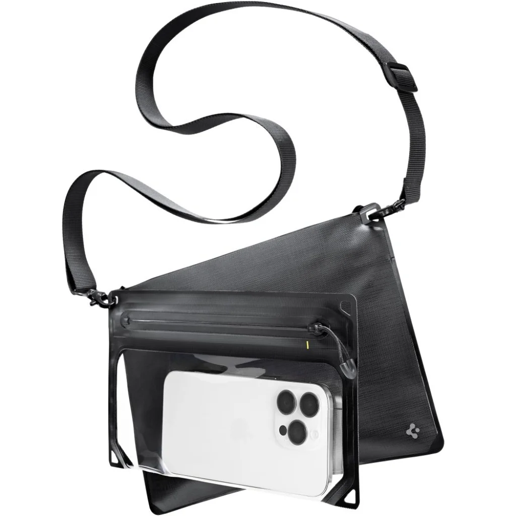 A Spigen A640 univerzális vízálló tok egy modern, sokoldalúan használható táska, amely kiválóan alkalmas utazásra és szabadtéri tevékenységekre. Moduláris rendszerével két levehető zsebet tartalmaz, amelyeket külön is használhatsz, vagy összekapcsolhatsz egy egésszé, így rugalmas megoldásokat kínál az igényeidhez alkalmazkodva. Külön dedikált rekeszek biztosítják a kényelmes szervezést – külön helyet nyújtanak az okostelefonod és a szükséges apróságaid számára, így rendet tartva és gyors hozzáférést biztosítva az eszközökhöz. Az érintőképernyő kompatibilitása és az átlátszó kamera kialakítás révén használhatod a telefonod és készíthetsz fényképeket a tokba való kivétel nélkül. A táska IPX8 szabvány szerinti vízállóságot kínál, ami 1,5 méteres mélységig 30 perc-es merülés elleni védelmet nyújt – a maximális zárás garantált, ha a zárat a sárga vonalig húzod. Továbbá, a multifunkcionális hordozási rendszer lehetővé teszi, hogy a táskát testtáskaként vagy válltáskaként használjd, ami kényelmesen illeszkedik a stílusodhoz és a helyzethez.