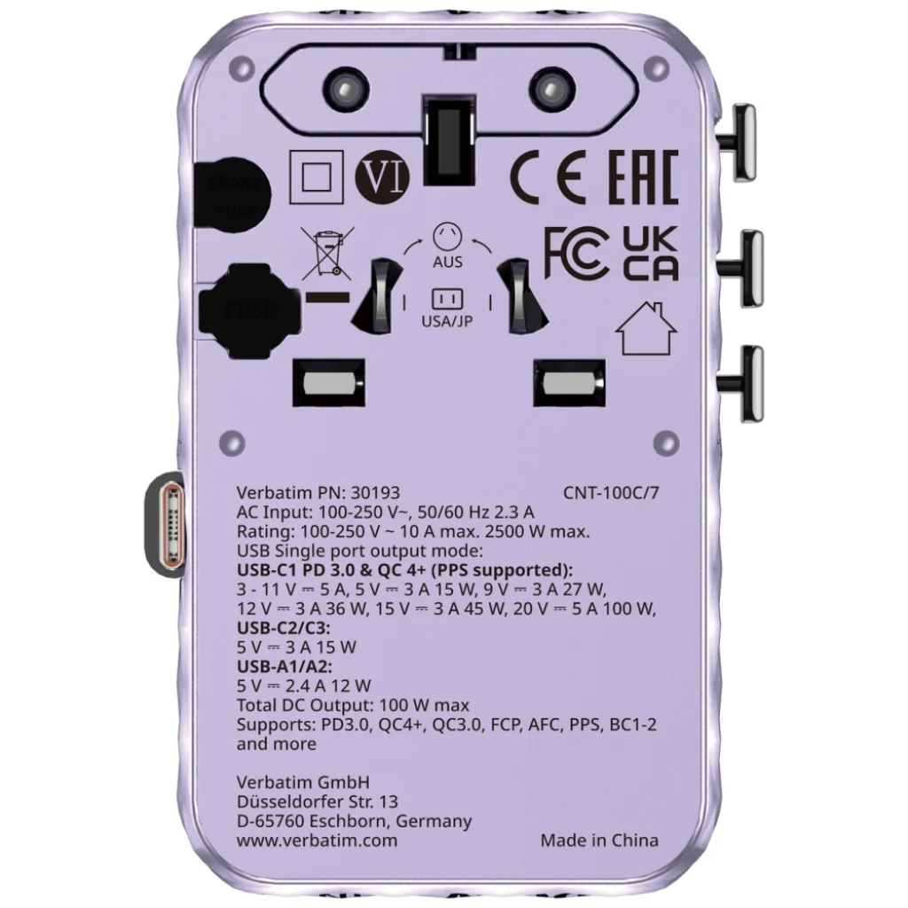 Szupergyors töltés 7 az 1-ben, akár 100 W teljesítménnyel – egyszerre akár hét eszközt is tölthet. Az adapter AC aljzatot, USA/JP aljzatot, két USB-C portot, két USB-A portot és egy visszahúzható USB-C kábelt kínál, összesen akár 100 W kimeneti teljesítménnyel. Támogatja az USB-C PD 3.0 és QC 4+ szabványokat (akár 100 W-ig), míg az USB-A portok akár 12 W-ot szolgáltatnak.