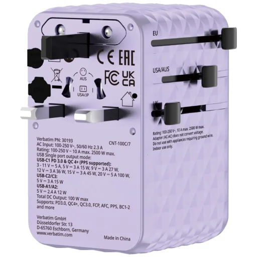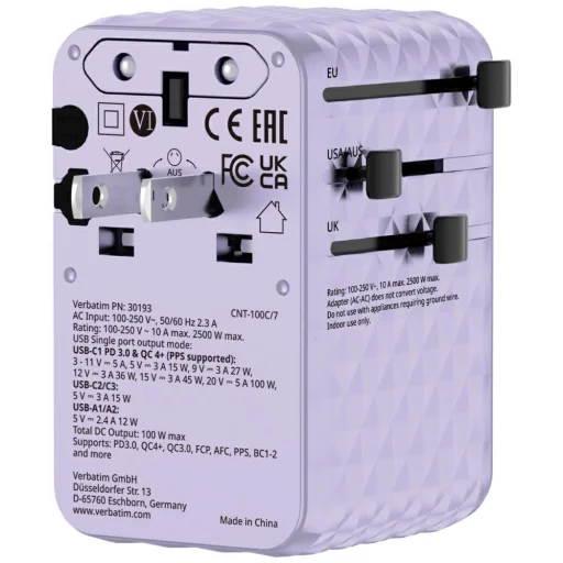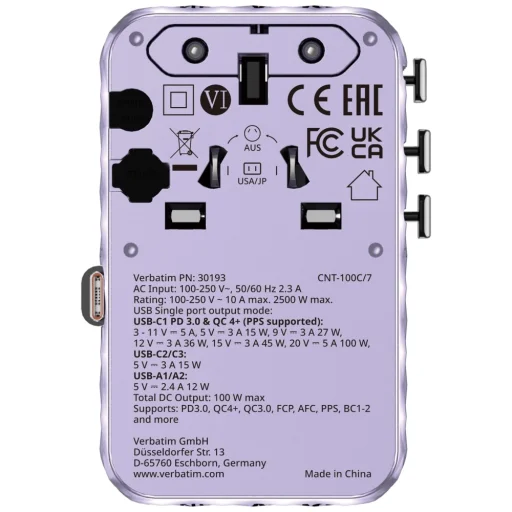 Több mint 180 országban támogatott. Ez az univerzális adapter lehetővé teszi a helyi konnektorokhoz való egyszerű csatlakozást világszerte. Ideális laptopok, okostelefonok, Bluetooth hangszórók, táblagépek, power bankok és számos más eszköz töltésére. Csak csúsztassa ki a három legnépszerűbb dugót (EU, UK, US), és ha szükséges, forgassa el a csapokat az ausztrál vagy kínai aljzatokhoz.