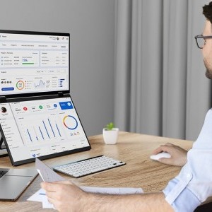 Az Uperfect Delta kettős képernyővel rendelkezik, amelyek pozíciója állítható, csökkentve a szem- és nyakfáradtságot. Az összecsukható kialakítás lehetővé teszi a képernyők különböző szögekbe állítását, ami ideális prezentációkhoz, online megbeszélésekhez vagy több feladat egyidejű végzéséhez. A két képernyő együtt vagy egymástól függetlenül működhet, így rugalmasabban és hatékonyabban használhatja a munkahelyét. Ez lehetővé teszi, hogy teljesen a munkájára koncentráljon, minimalizálva az ablakok közötti görgetés és váltás során eltöltött időt.