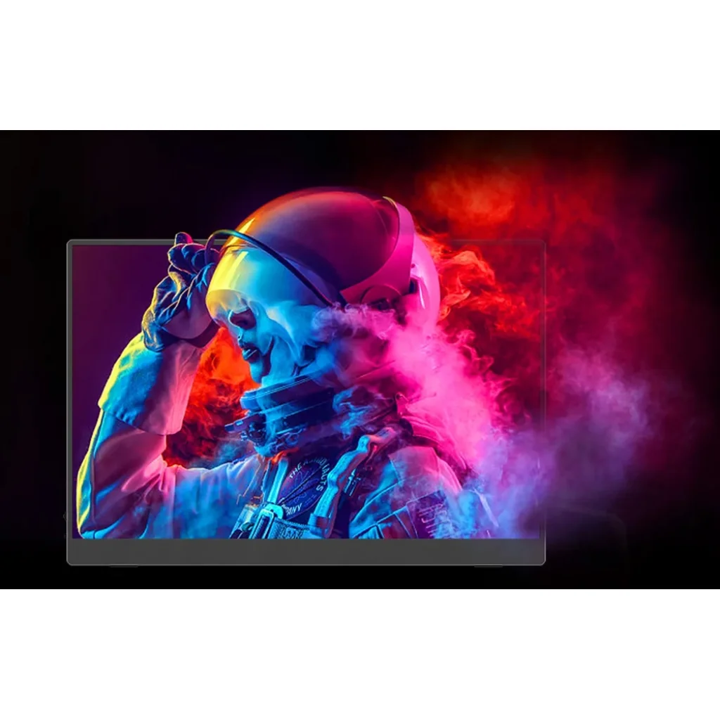 Kompakt ház és alumíniumszerkezet: Az alumíniumszerkezet növeli a mechanikai sérülésekkel szembeni ellenállást. A teljes méret 344,68 mm szélesség × 215,42 mm magasság, így a monitor könnyen szállítható. Emellett a készülék tápellátása USB-C portkábelről történik.