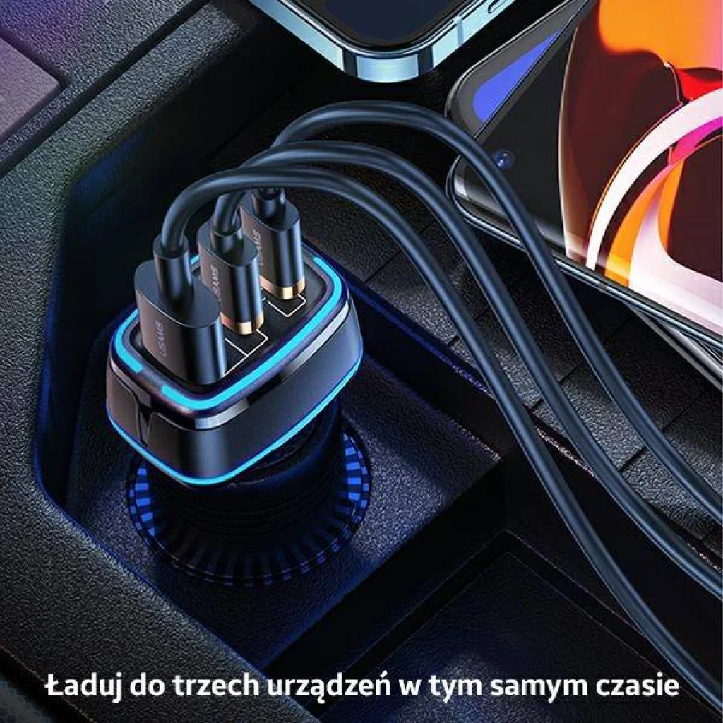 Usams US-CC141 C24 autós töltő három 2xUSB-C és 1x USB-A porttal, amely lehetővé teszi három eszköz egyidejű töltését. A töltő teljes teljesítménye 105 W. A beépített intelligens felügyeleti rendszernek köszönhetően nem csak az adott berendezéshez igazítja a megfelelő feszültséget, hanem annak töltöttségi szintjéhez is (ilyen módon korlátozza az energiafogyasztást). Támogatja a QC3.0 gyorstöltést.