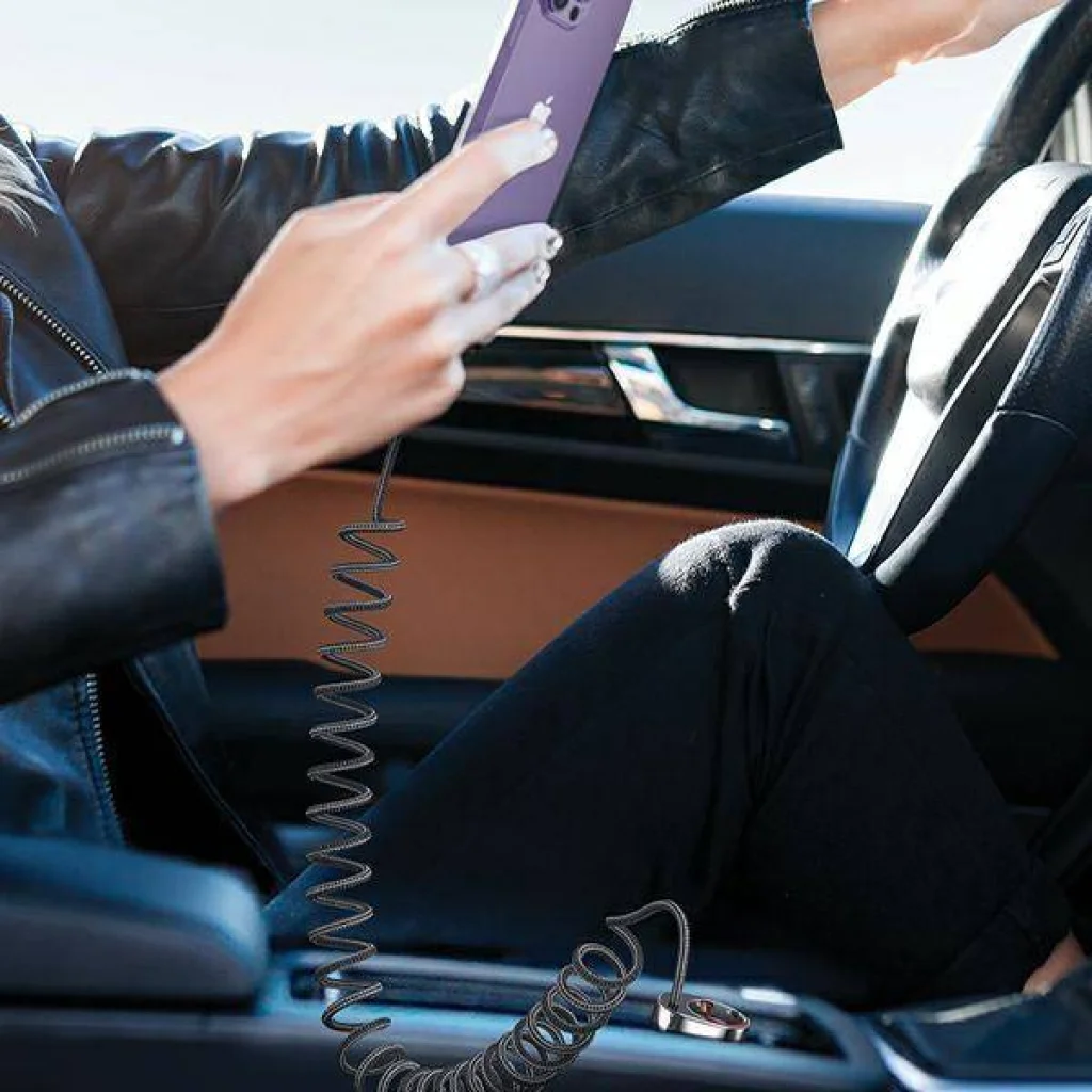 A kiegészítő továbbá ellátva van egy Fast Charging technológiával kompatibilis rugós kábellel, USB Type-C csatlakozóval. A megfelelő hosszúság (120 cm) kényelmes használatot és tárolást tesz lehetővé.