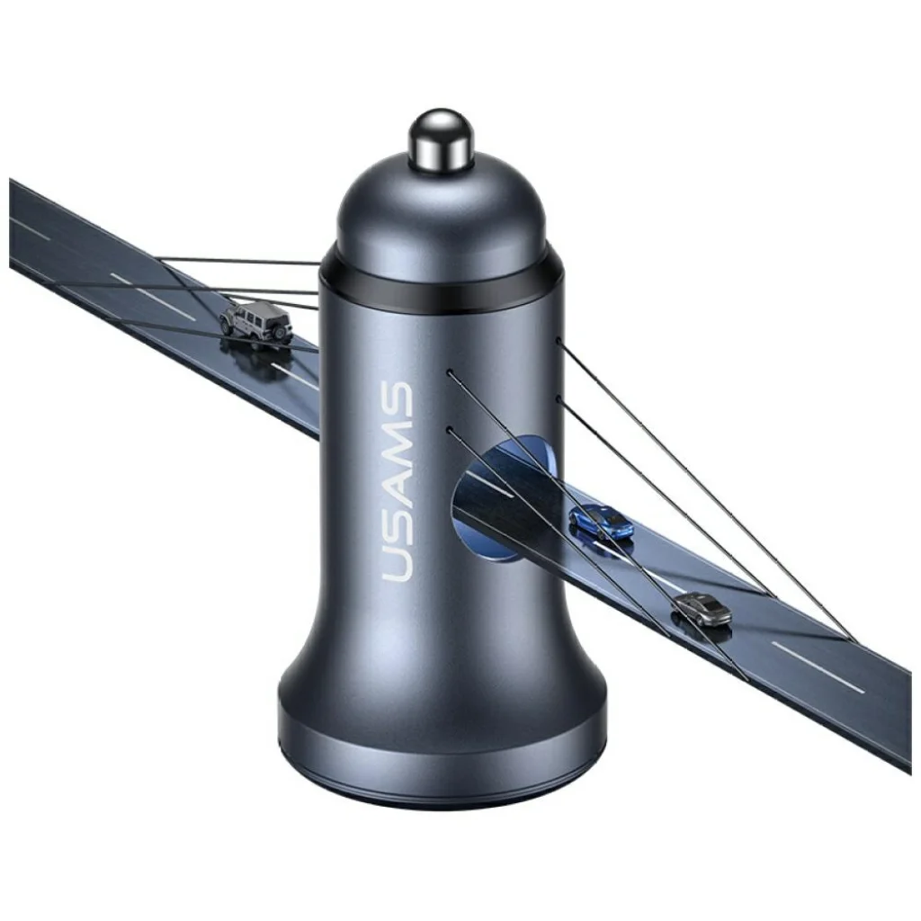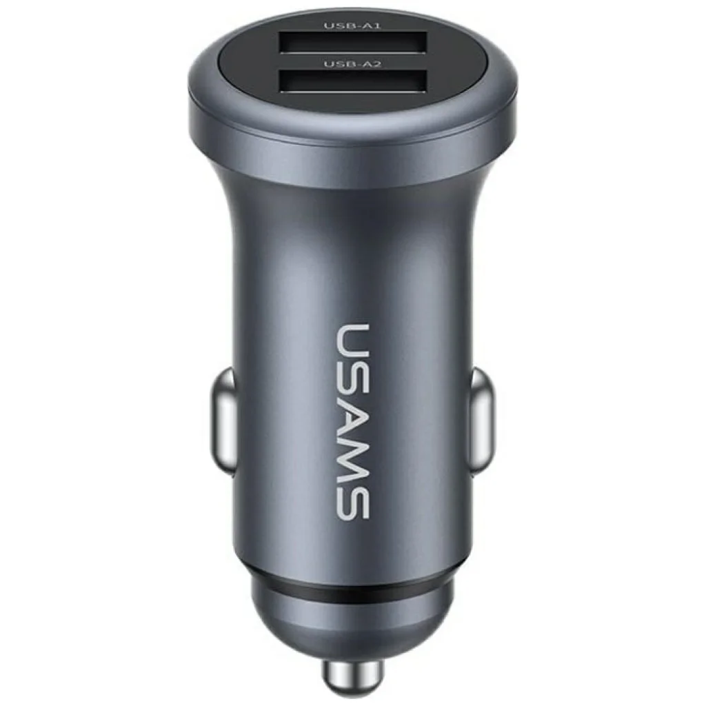 USAMS CC320 Aluminium 2.4A 2xUSB-A autós töltő szürke