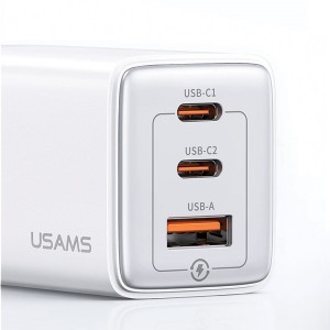 Az USAMS US-CC180 Sandru Sorozat egy intelligens falitöltő magas, 65W teljesítménnyel, amely lehetővé teszi két eszköz egyidejű gyors töltését. A töltő rendkívül kényelmes, három különböző típusú USB-porttal van felszerelve, amelyek számos gyors töltési protokollt támogatnak, így sok gyártó eszközeivel kompatibilis. Az USB-C portok képesek gyorsan tölteni az eszközöket, így ez a termék hatékonyan helyettesítheti három különálló töltőt. Az USB-k gyors töltési protokollokkal kompatibilisek, mint például a QC3.0/AFC/FCP, támogatva a Huawei, Apple, Xiaomi, Honor, OPPO, Samsung és más modellek gyors töltését. Az eszköz harmadik generációs GaN chip-pel van ellátva, amely alacsony hőmérséklet-kibocsátással és kiváló hatékonysággal rendelkezik. Technikai adatok: Márka: USAMS, Modell: US-CC180, Anyag: PC, Méretek: 34.4 x 37.6 x 102 mm, Súly: Körülbelül 110g, Szín: Kék. Bemeneti teljesítmény: 100-240V - 50/60 Hz 1.5A (max). Kimenetek: USB-C1/C2 kimenet: max. 65W, USB kimenet: max. 60W, USB-C1 + USB-C2 kimenet: 45W + 20W.