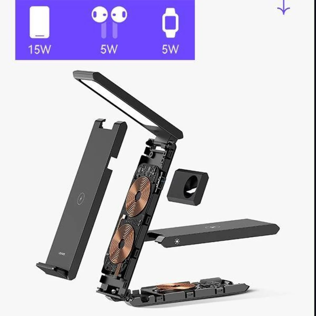 Az Usams US-CD181 egy szuper praktikus, hordozható vezeték nélküli töltő asztali lámpával, amely az okostelefon, a fülhallgató és az Apple Watch töltésére szolgál. Ez a modern, összecsukható vezeték nélküli dokkolóállomás tökéletes asztali tartozék otthonába vagy irodájába, amellyel minden kütyüjét újratöltheti rendetlen és kusza kábelek nélkül. Ekkor a praktikus, három fényerősségű LED-lámpa jól jön, ha extra fényre van szüksége íróasztalán vagy éjjeliszekrényén.